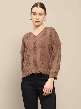 Madame Cable Knit Pearl Embellished Brown Sweater