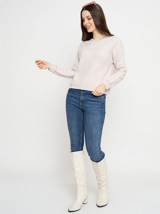 Madame Pearl Embellished Floral Embroidered Pink Sweater