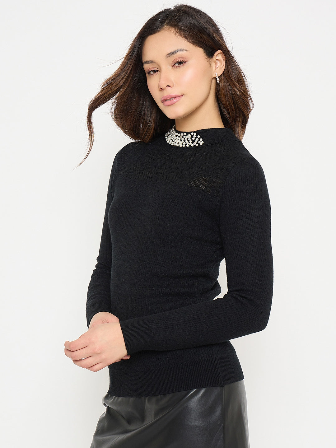 Madame Mock Neck Black Embellished Sweater