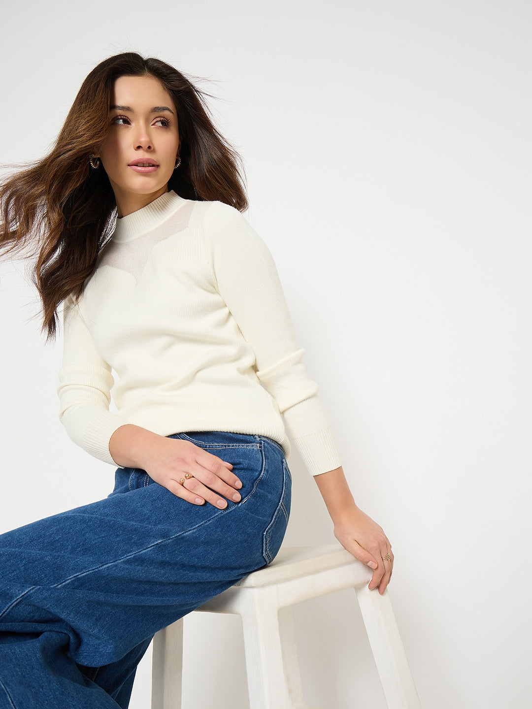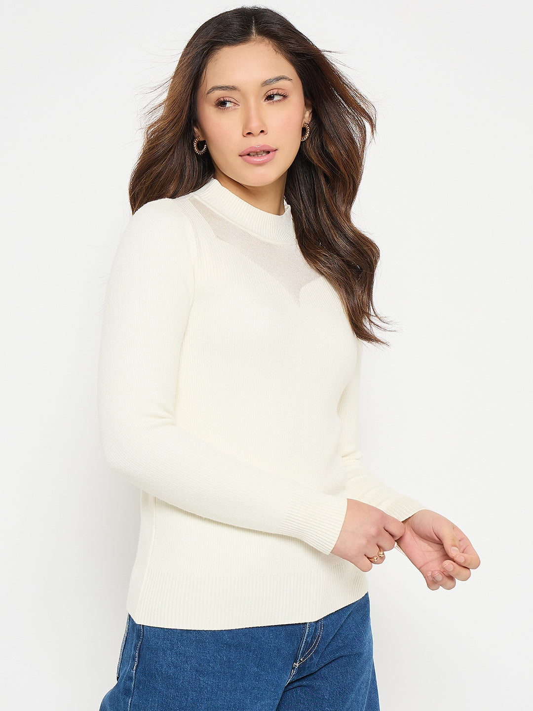 Madame Mock Neck Off White Solid Sweater