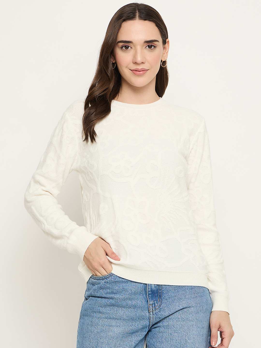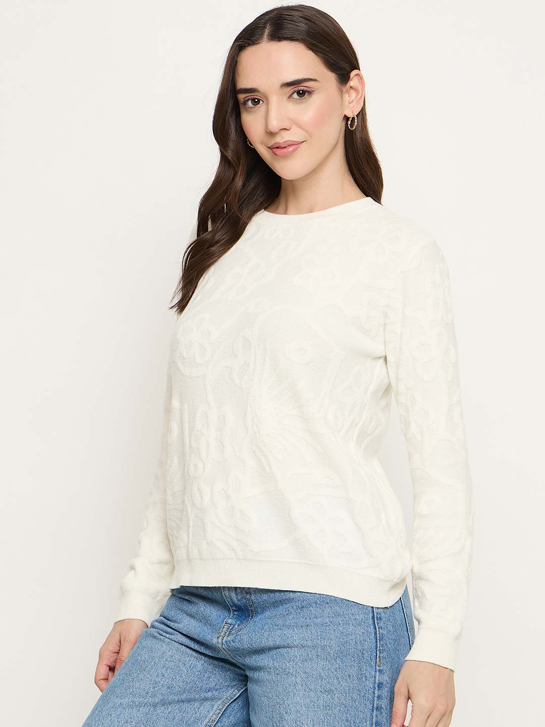 Classic, cozy, and effortlessly chic — the Madame Embossed White Sweater brings subtle sophistication to your wardrobe. Crafted with a soft knit fabric and featuring a delicate embossed pattern, this sweater adds texture and style while keeping you comfortable. Perfect for pairing with jeans, skirts, or tailored pants for an elevated everyday look.