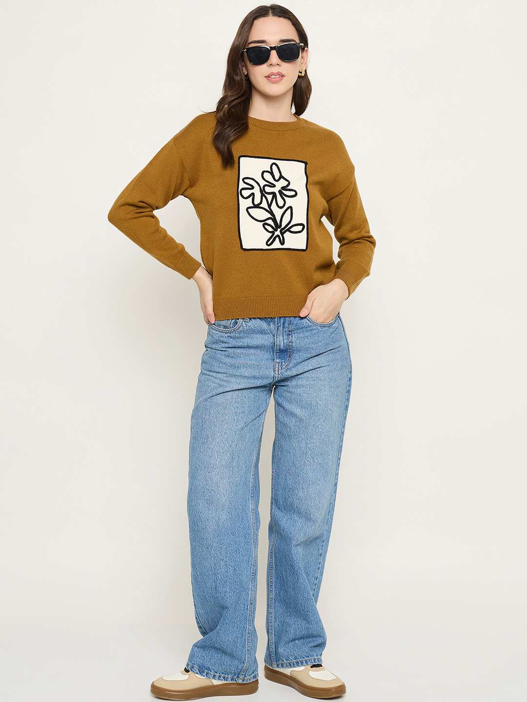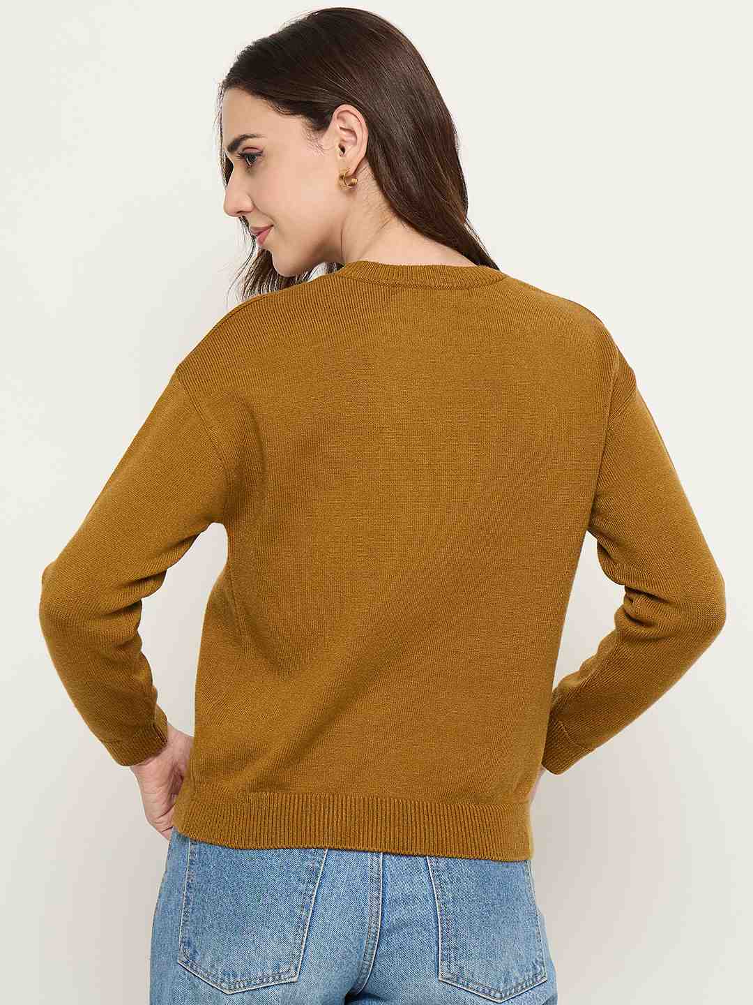 Elevate your everyday winter style with this brown round neck sweater from Madame. The smooth knit and classic silhouette offer effortless comfort, making it an easy match for jeans, trousers, or layered looks throughout the season.