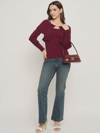 Madame Twisted Ruffle Detail Wine Red Sweater