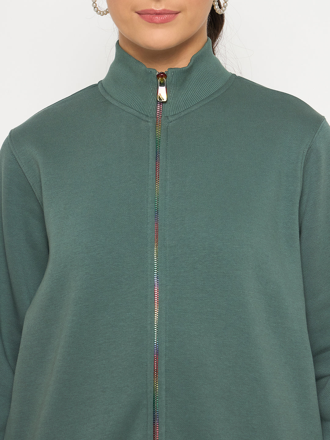 Madame Fleece T Neck Front Zip Blue Sweatshirt