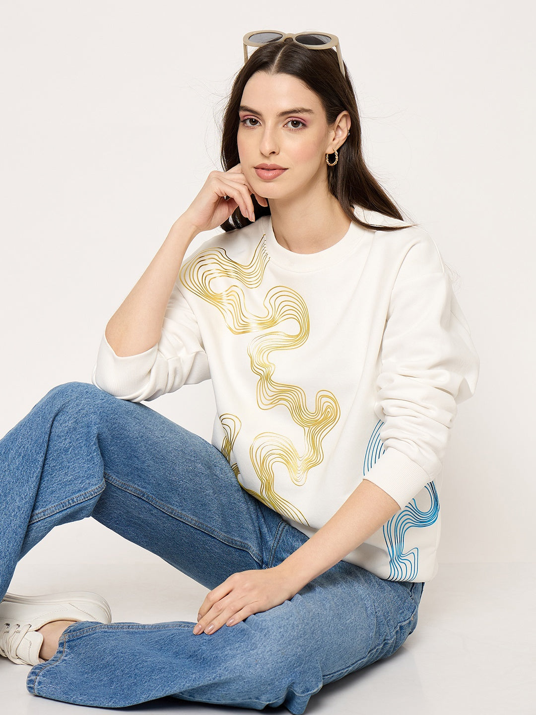 Elevate your casuals with this white printed crew neck sweater. Soft, stylish, and perfect for winter warmth with effortless chic.