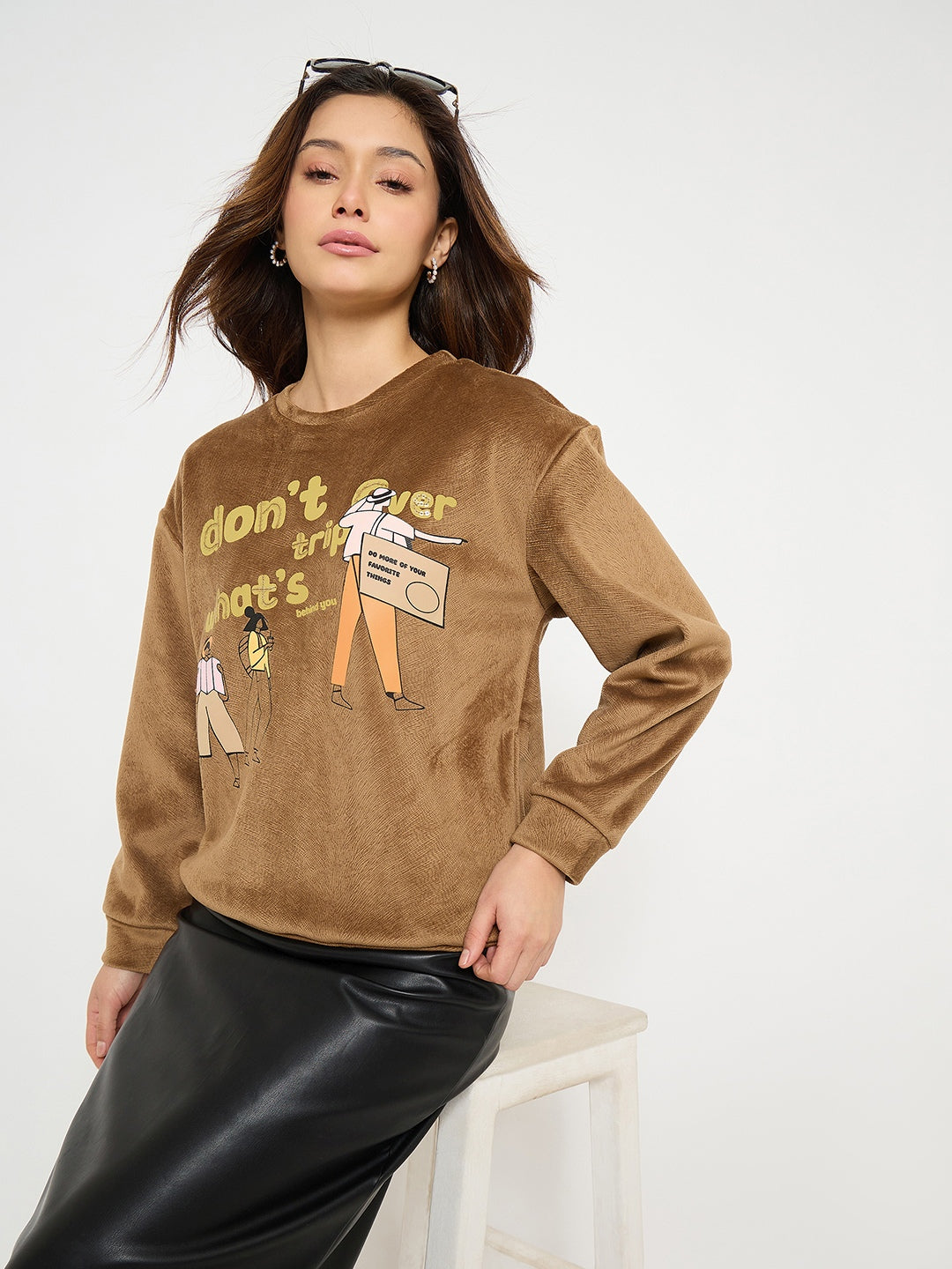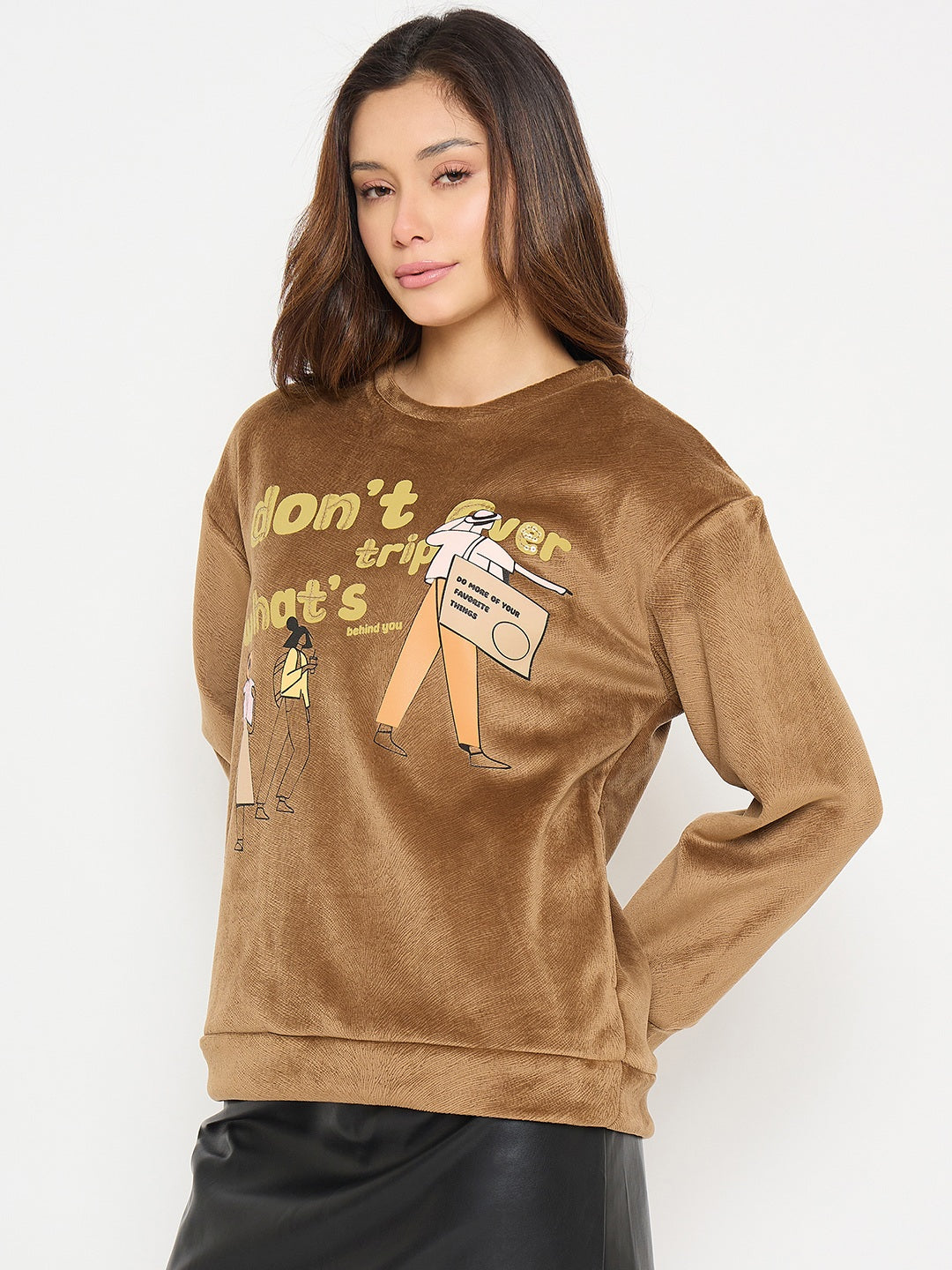 Add a stylish statement to your wardrobe with this brown graphic print sweatshirt from Madame. Featuring a relaxed fit and eye-catching graphic design, it combines casual comfort with modern style. Crafted from soft, breathable fabric, this versatile sweater is perfect for layering or wearing on its own for effortless everyday looks.