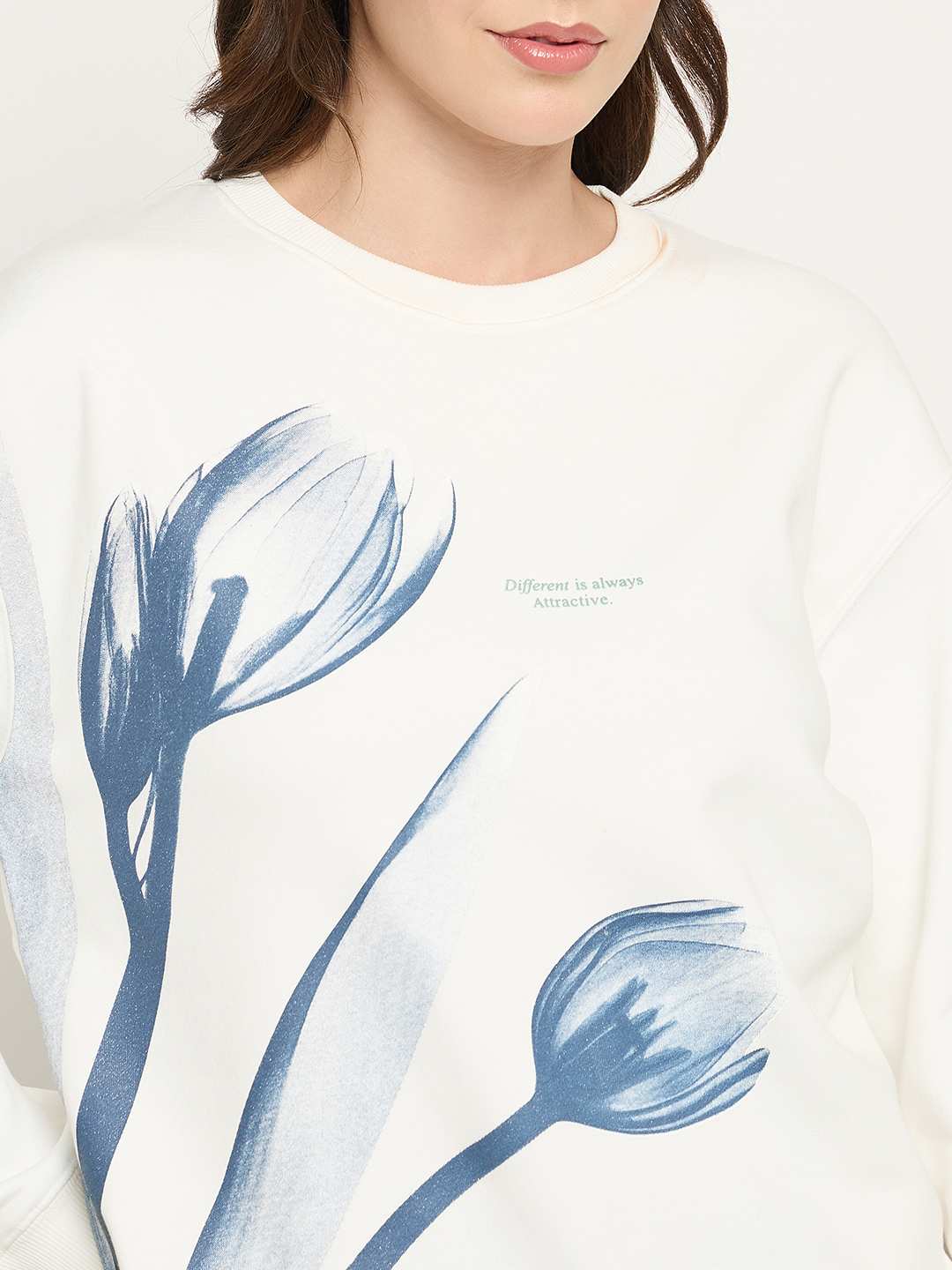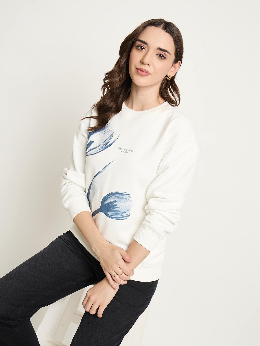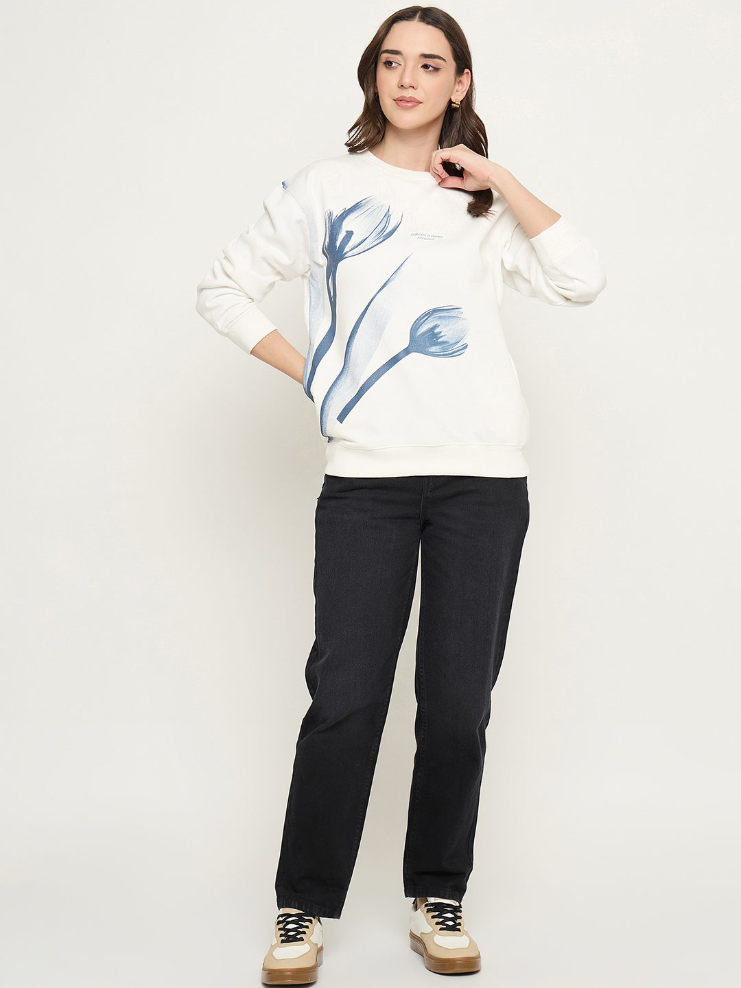 Add a fresh, feminine touch to your casual wardrobe with the Madame Floral Print White Sweatshirt. Crafted from soft, comfortable fabric, it features a relaxed fit and vibrant floral prints that brighten up your everyday look. Perfect for pairing with jeans, skirts, or leggings for effortless style.