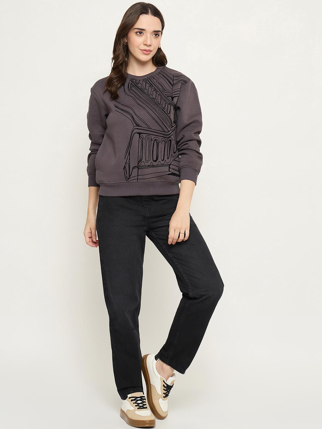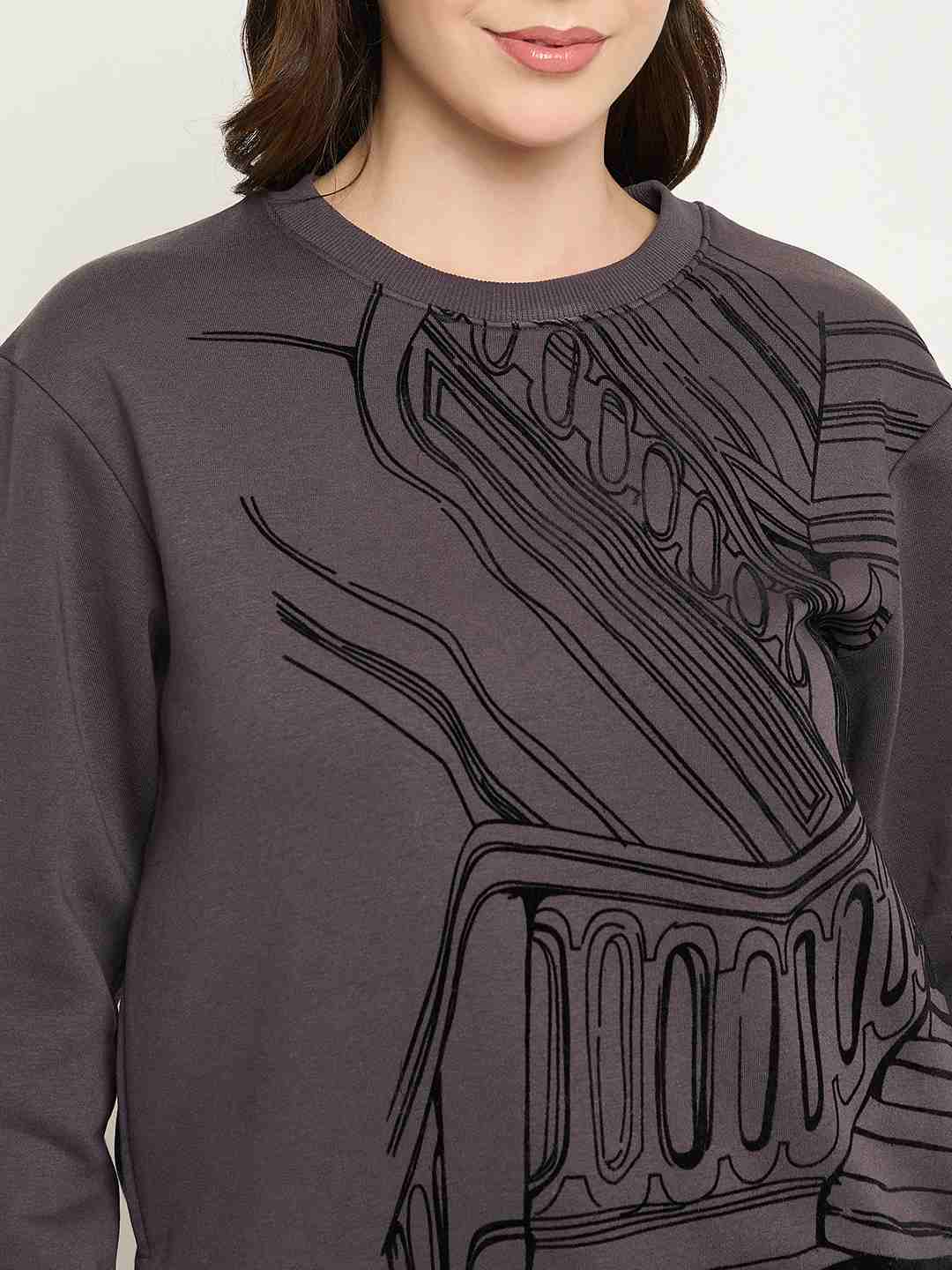 Elevate your casual wardrobe with the Madame Printed Grey Sweatshirt. The subtle grey tone paired with a stylish print creates a contemporary, chic look. Soft, breathable fabric ensures all-day comfort, ideal for weekends, brunches, or casual office wear.
