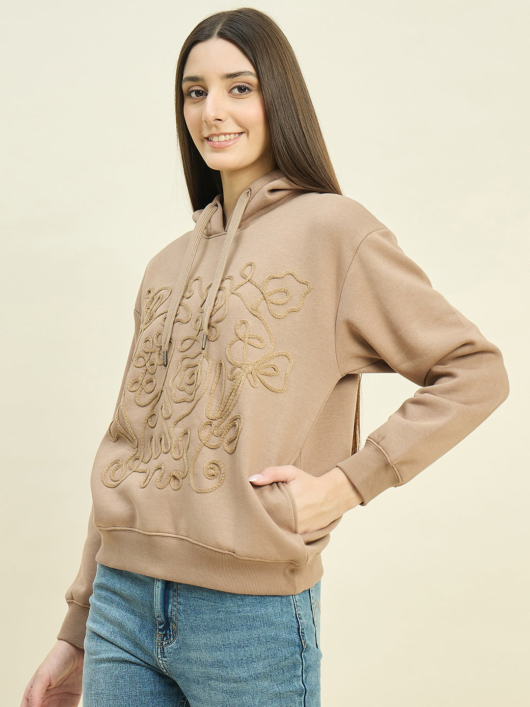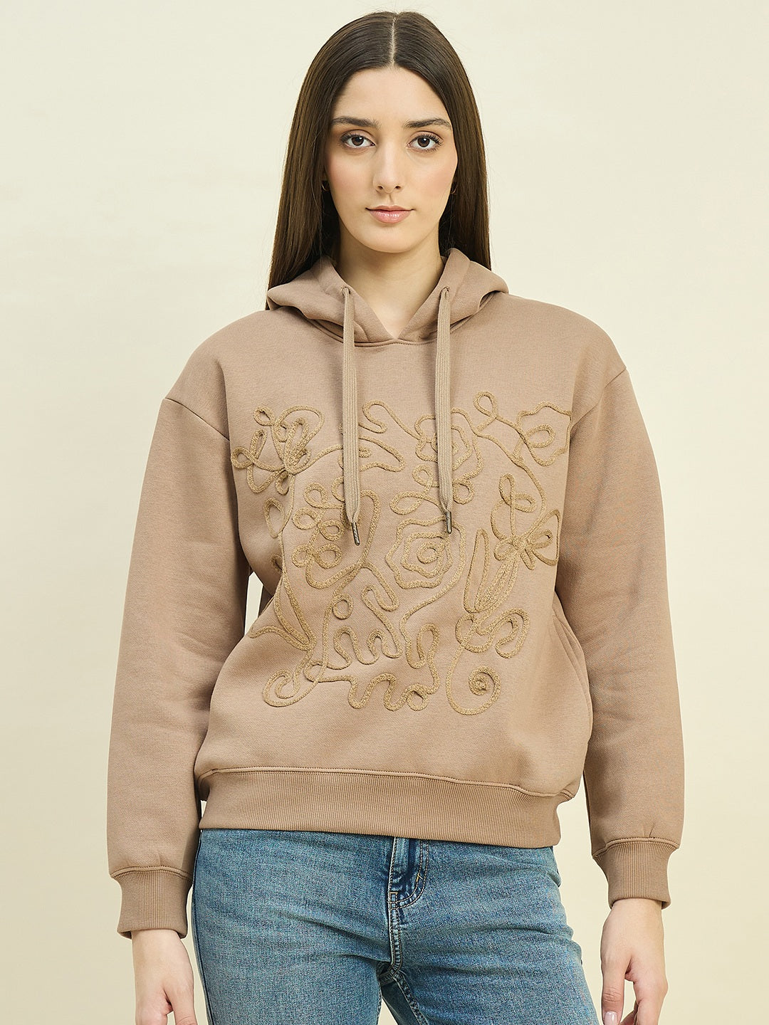 Stay comfortable and stylish in the beige cotton blend sweatshirt from Madame. Soft, breathable, and relaxed in fit, it pairs effortlessly with jeans, trousers, or leggings for casual outings or cozy indoor days.