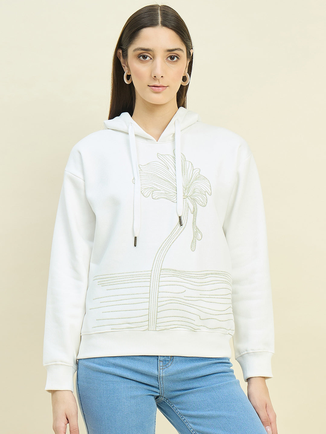 Madame Printed Cotton Blend White Sweatshirt brings casual style to your everyday wardrobe. Soft, breathable, and featuring a chic print, it pairs perfectly with jeans or leggings for a relaxed yet fashionable look.