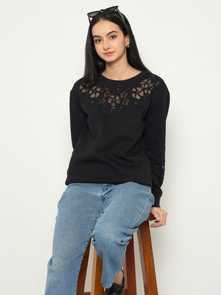 Madame Embroidered Round Neck Solid Sweatshirt