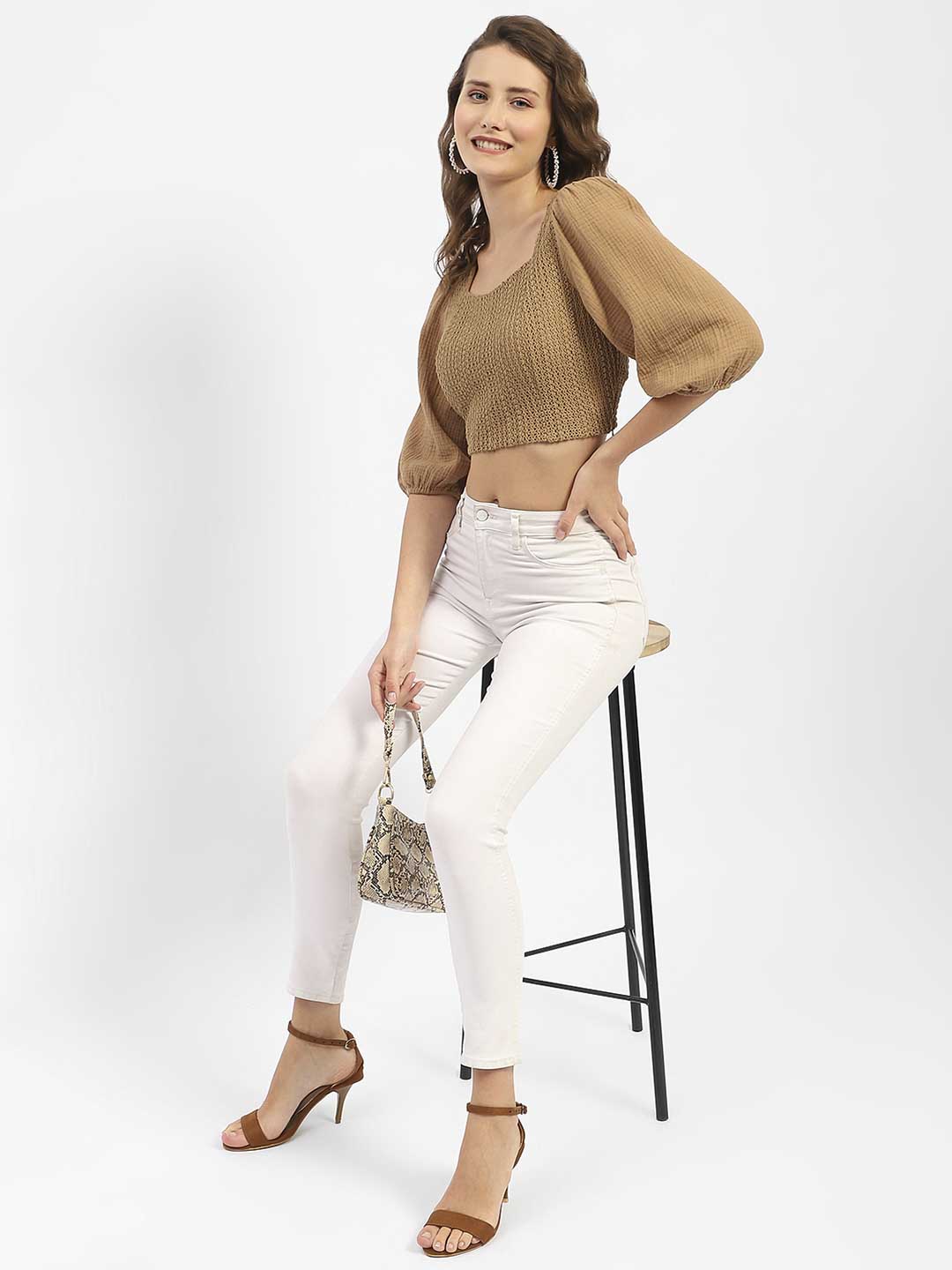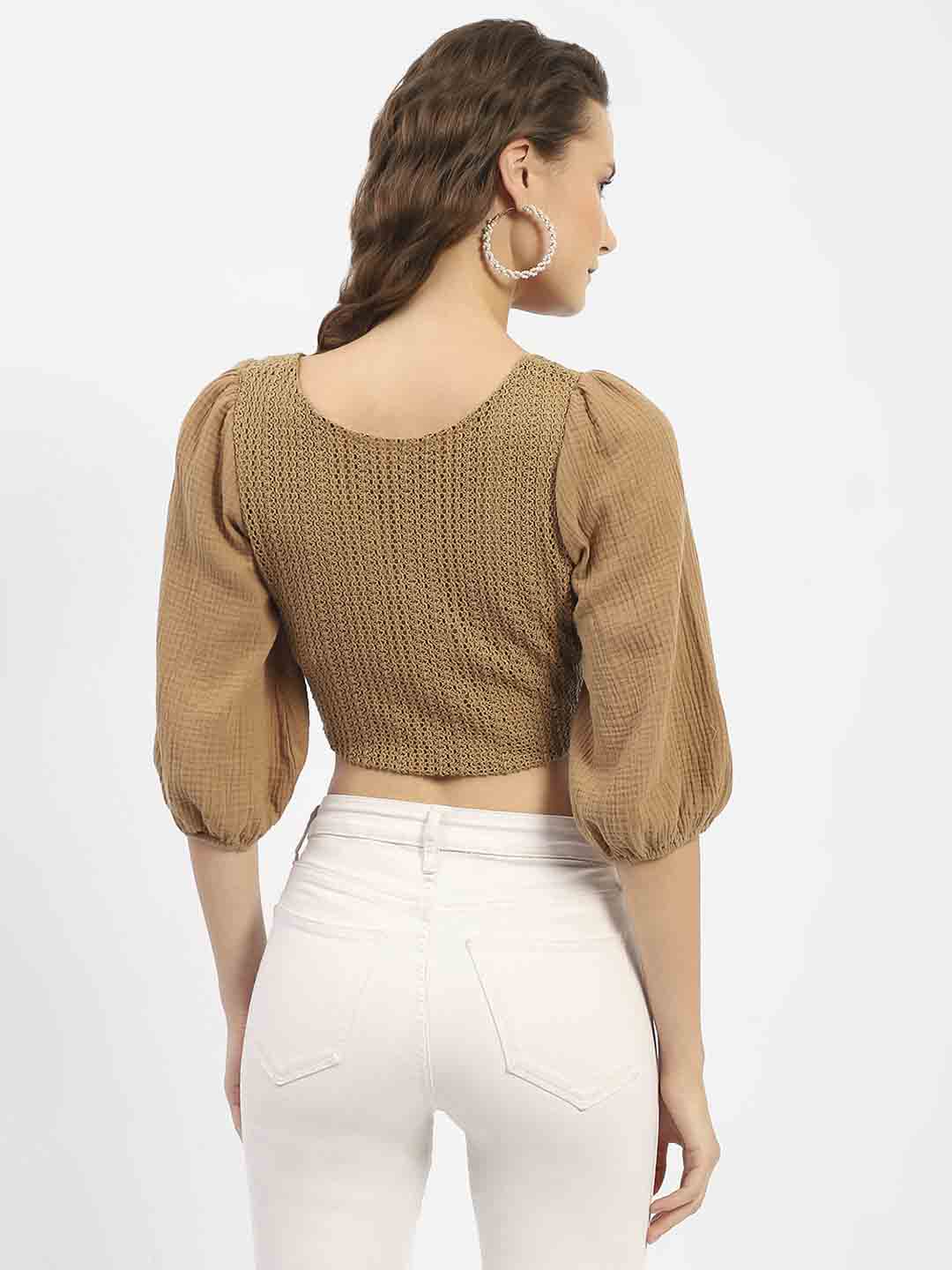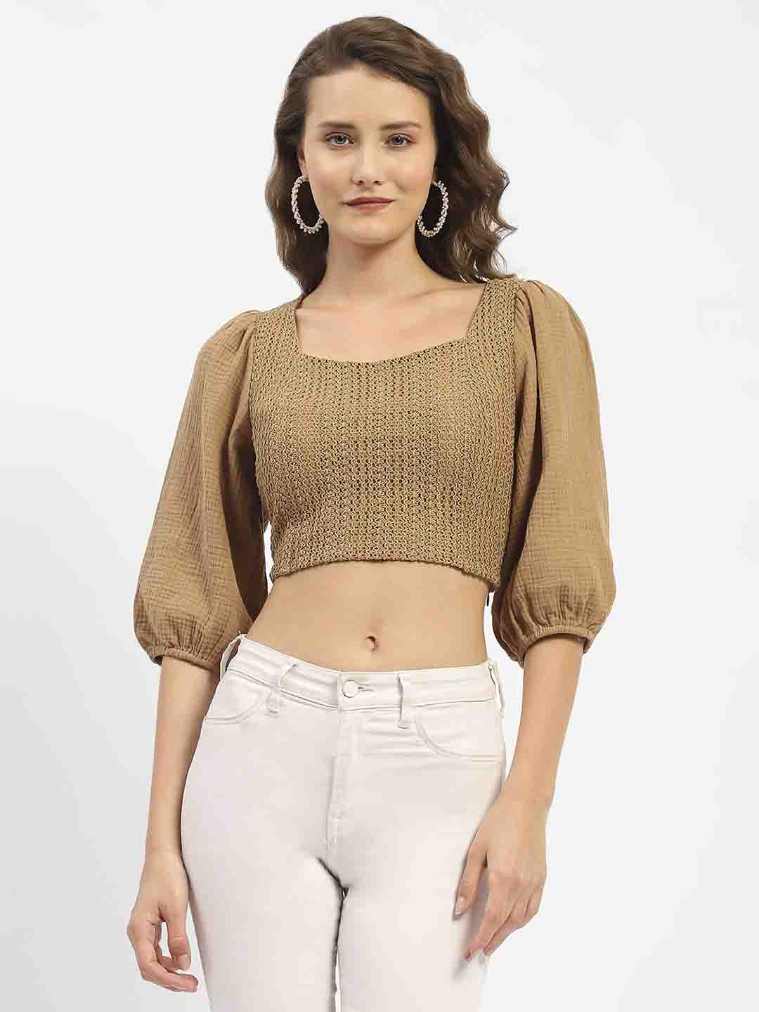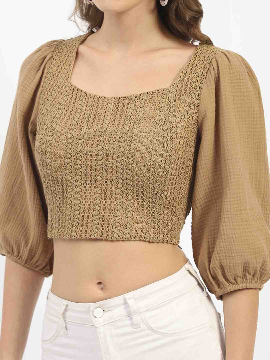 Madame Square Neck Brown Crop Top