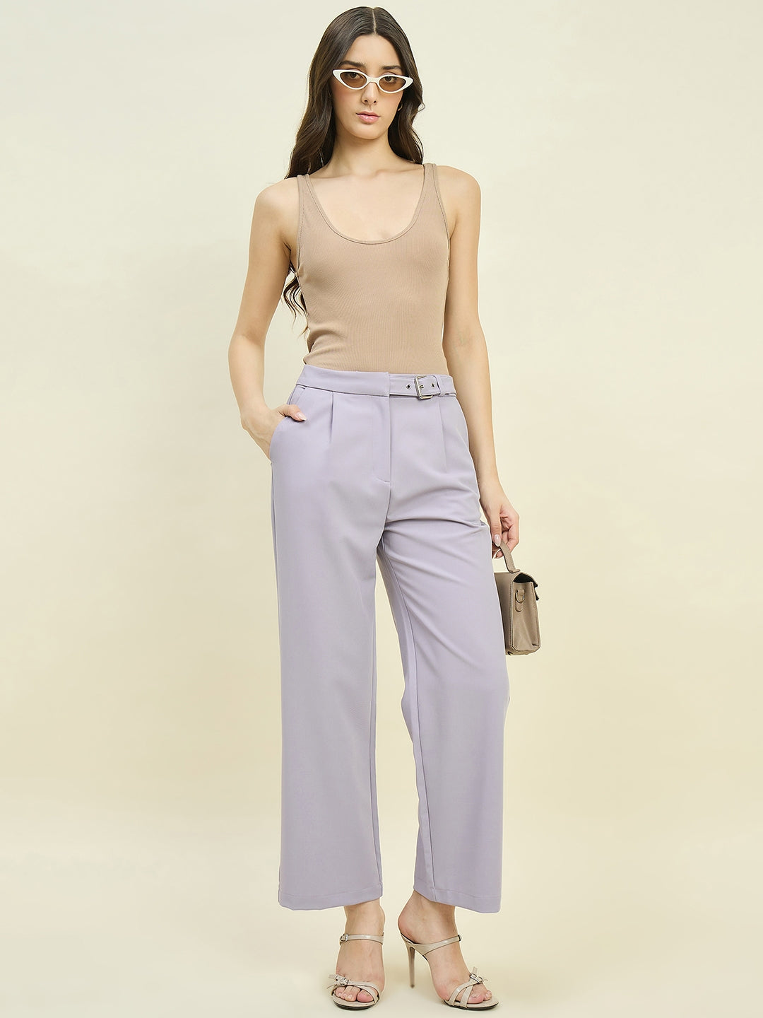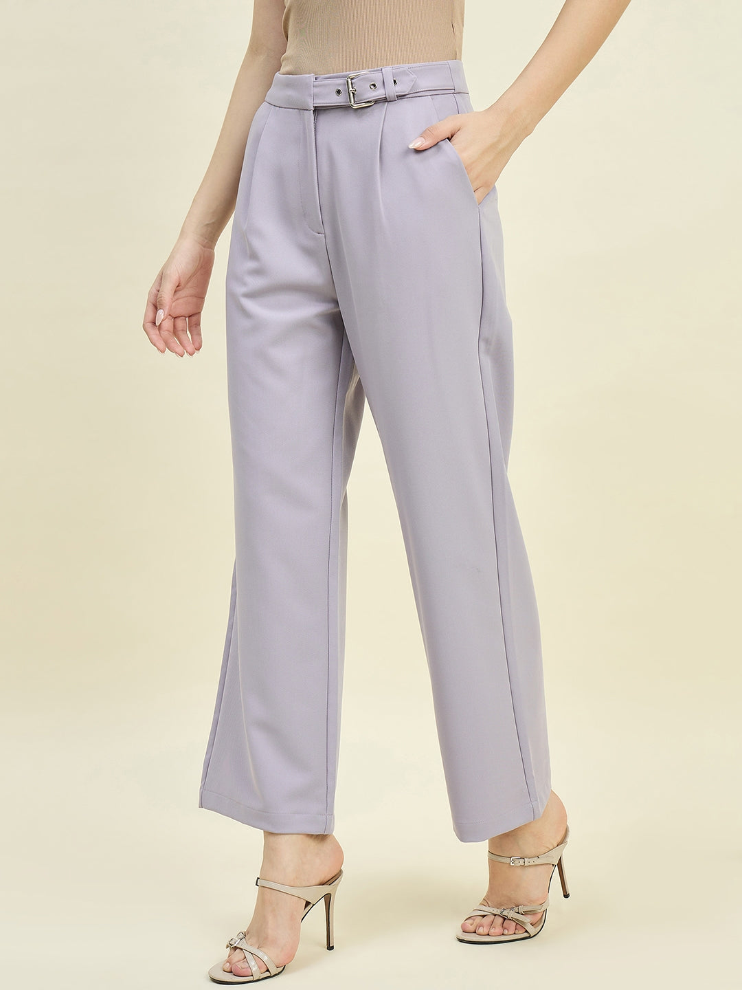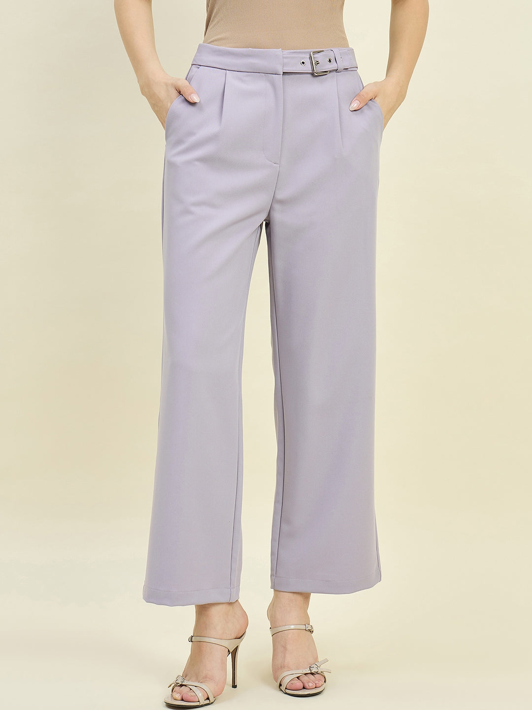 Bring a soft, pastel charm to your wardrobe with lilac relaxed fit trousers from Madame. With a comfortable, flowing fit, they are perfect for casual outings or chic work wear looks, combining ease and effortless style.
