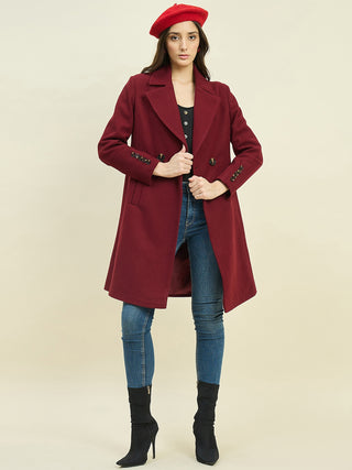 Madame Maroon Double Breasted Long Coat