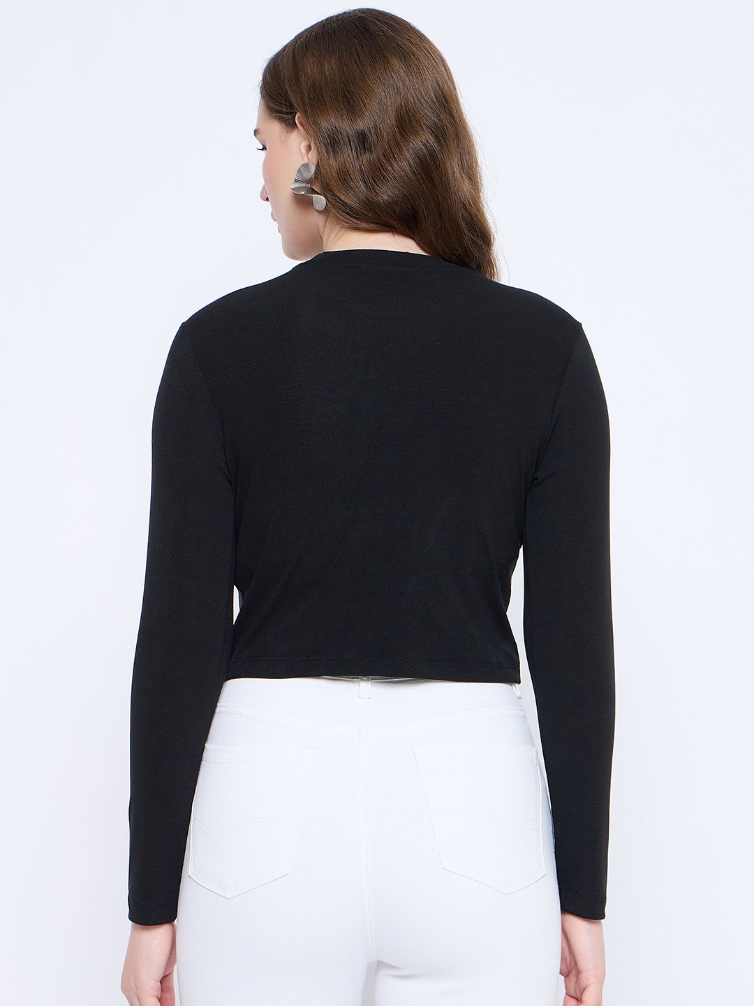 Madame Corset Body Stitch Line Detailed Solid Black Ribbed Crop Top