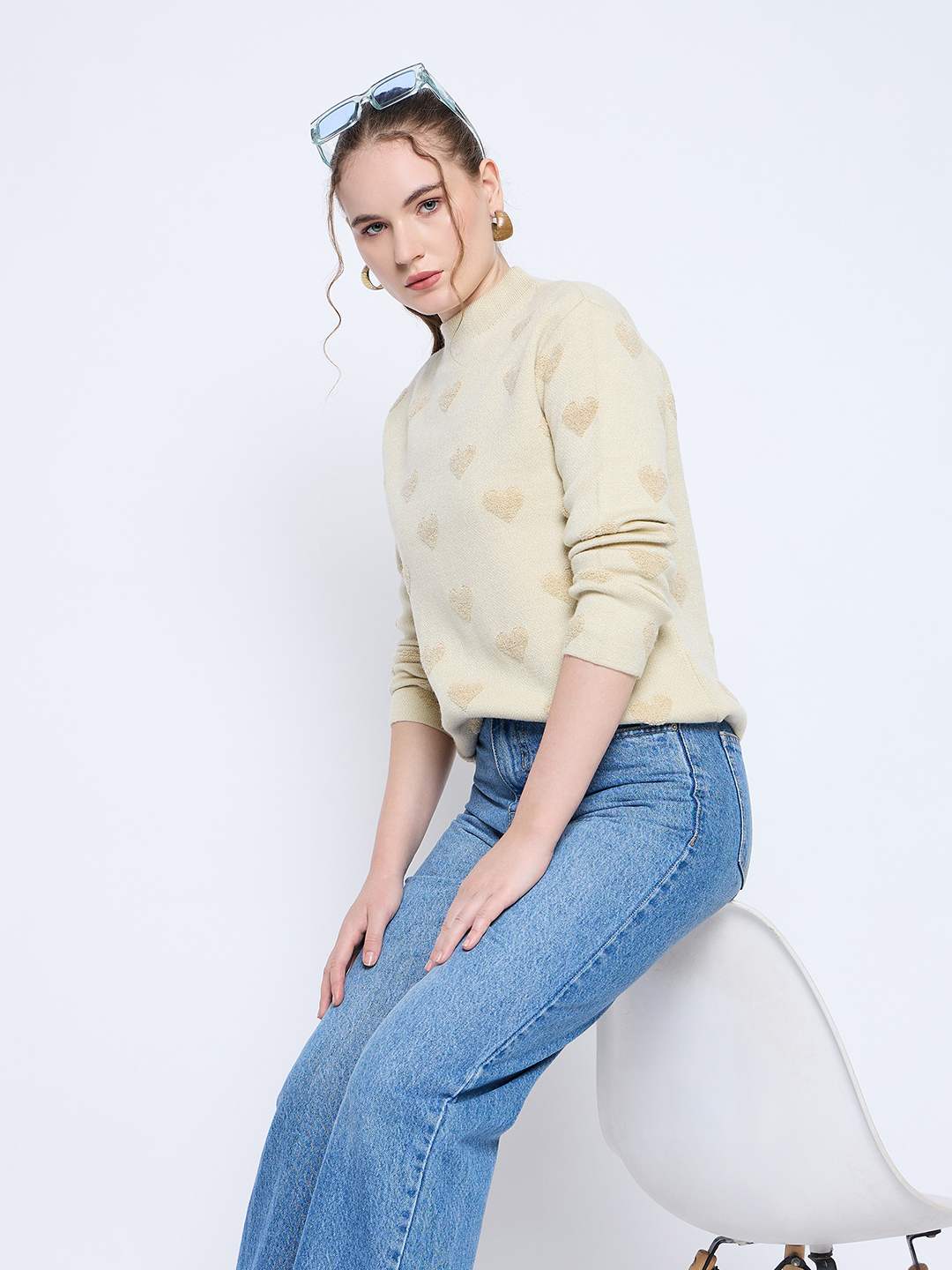 Madame Graphic Print Mock Neck Beige Sweater