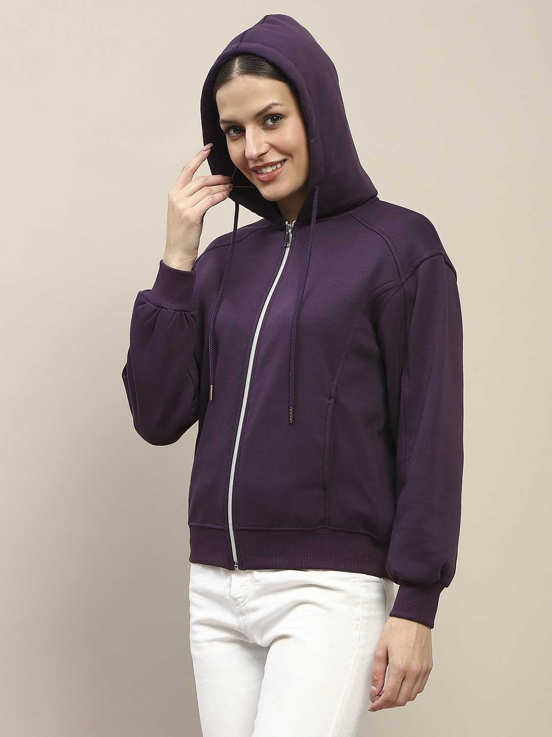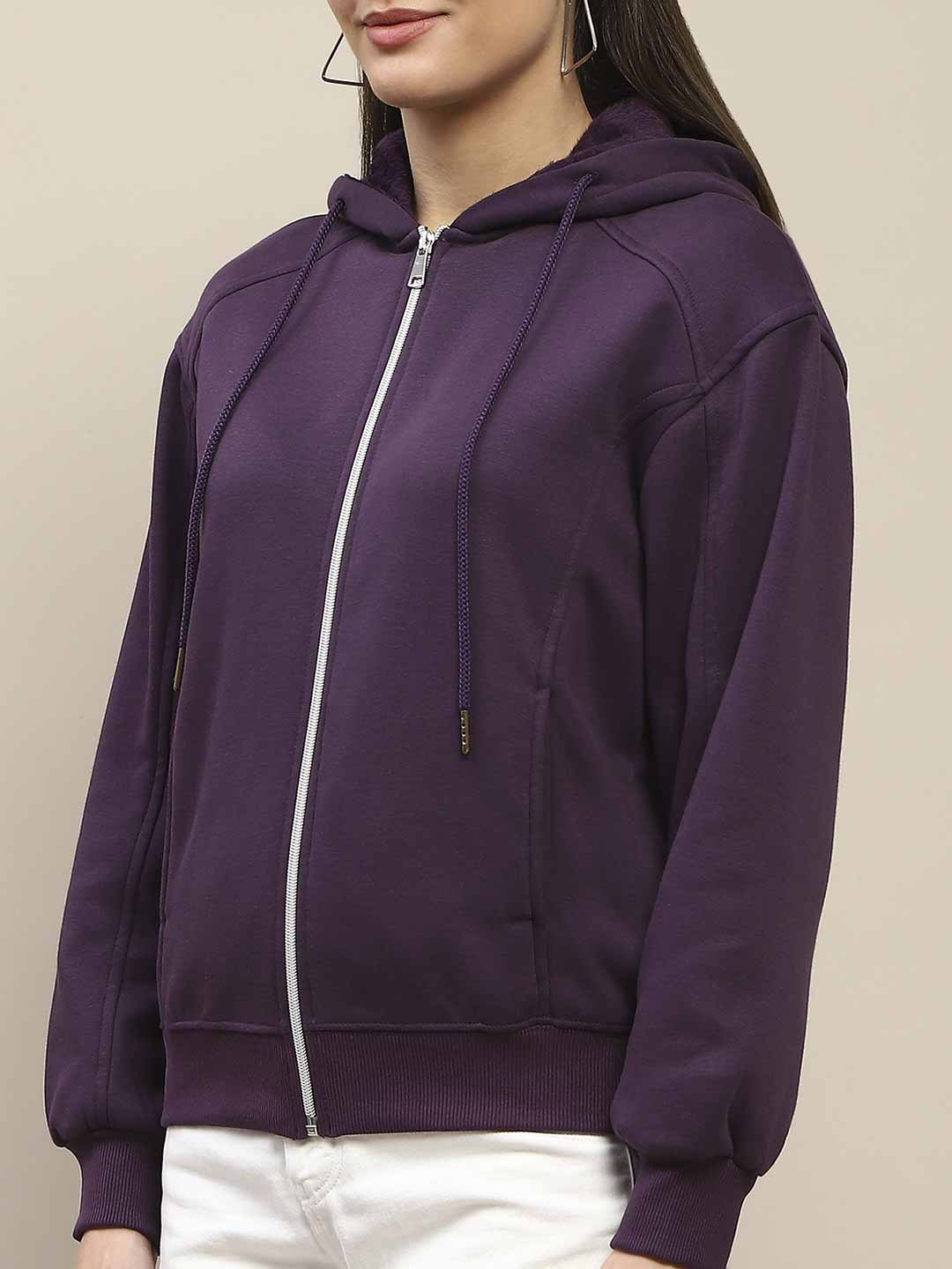 Madame Fleece Cut And Sew Detailed Zipped Purple Hoodie