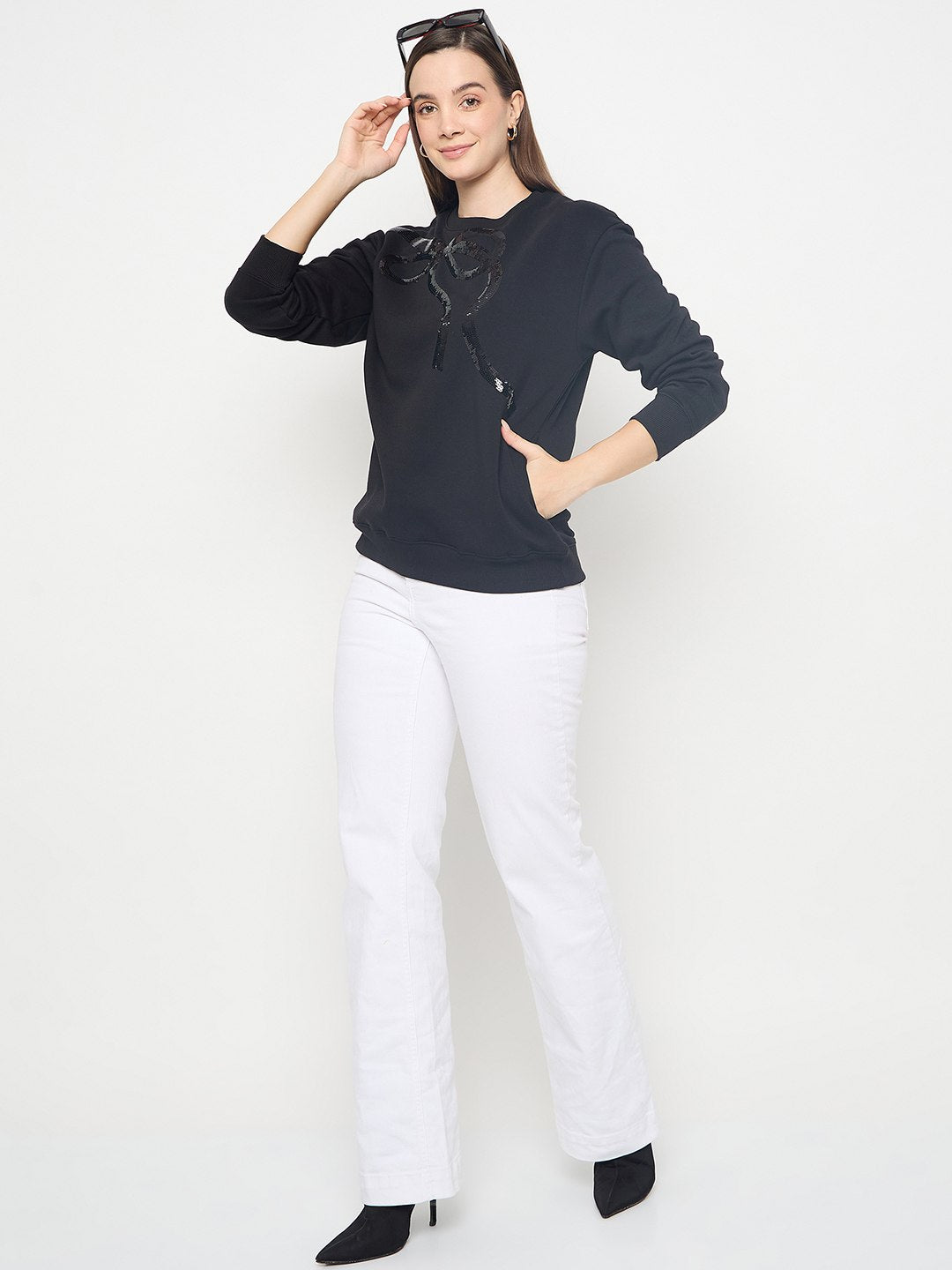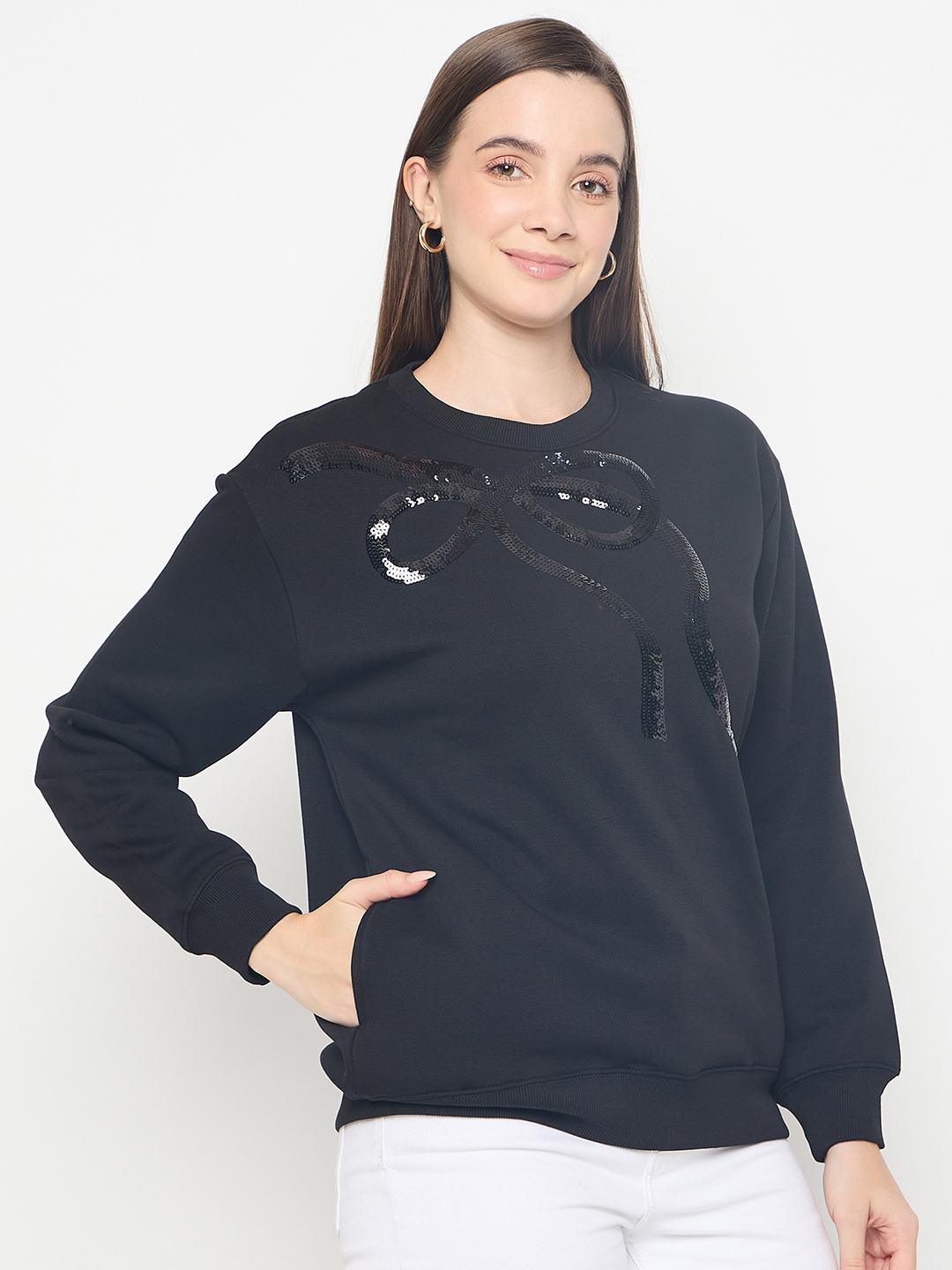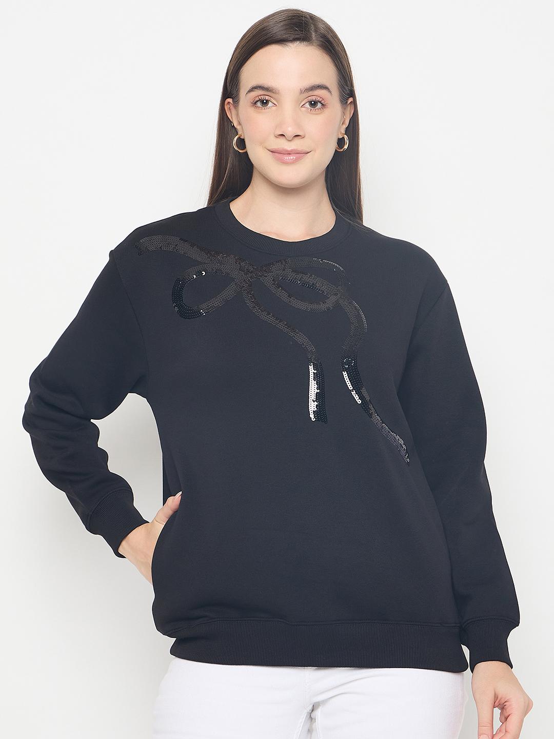 Madame Embellished Cotton Blend Black Sweatshirt