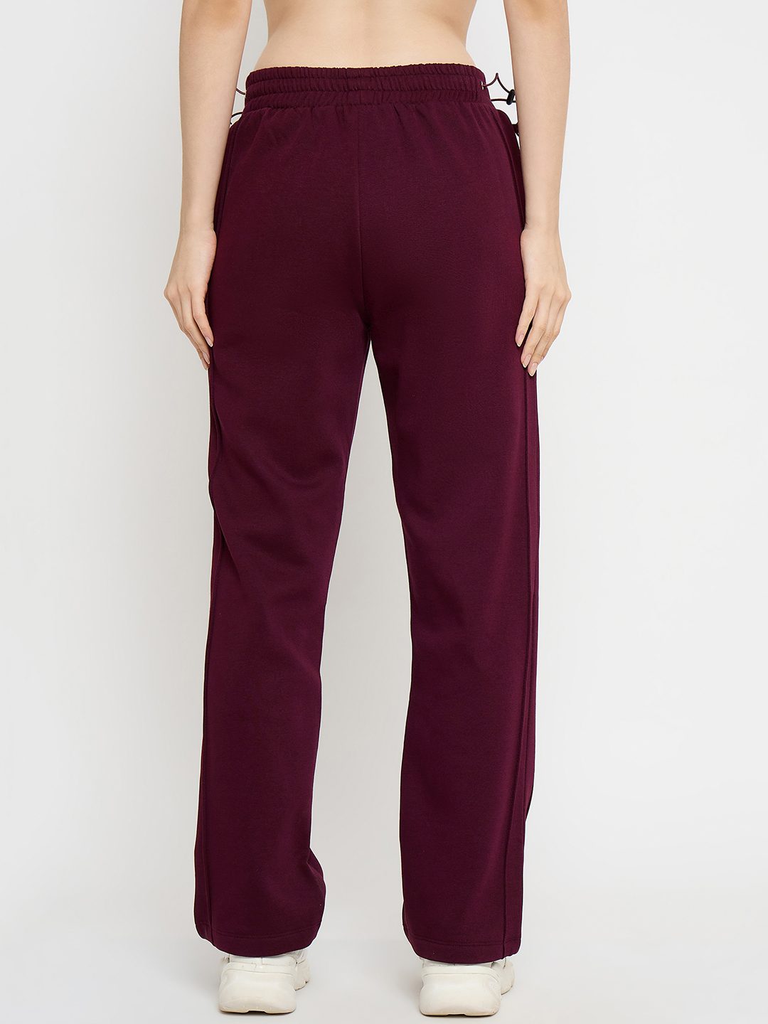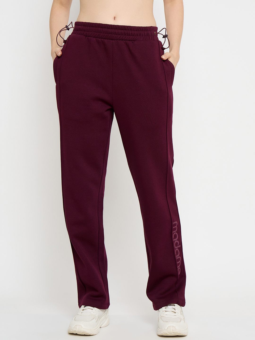 These plum-toned straight track bottoms feature bold soft fabric with typography prints and an elasticated waistband with drawstring detail for an urban, sporty vibe.