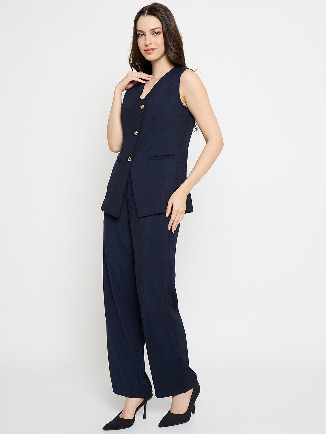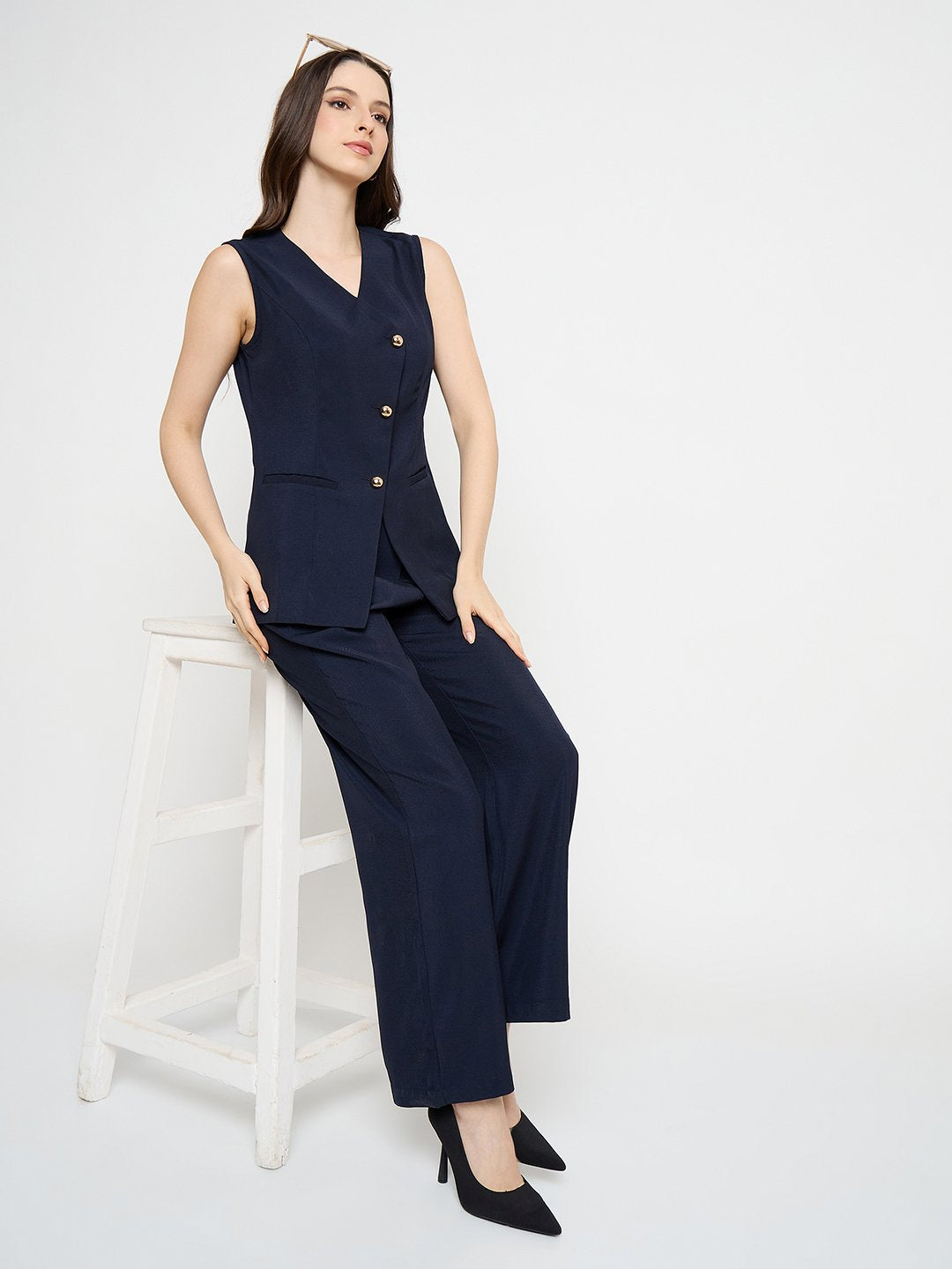 Madame Asymmetrical Neck Navy Blue Top