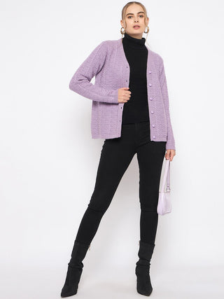 Madame Cable Knit V- Neck Buttoned Lilac Cardigan
