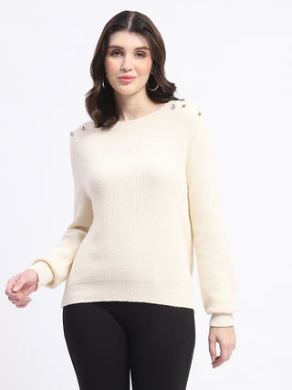 Madame Cable Knit Pearl Embellished Brown Sweater