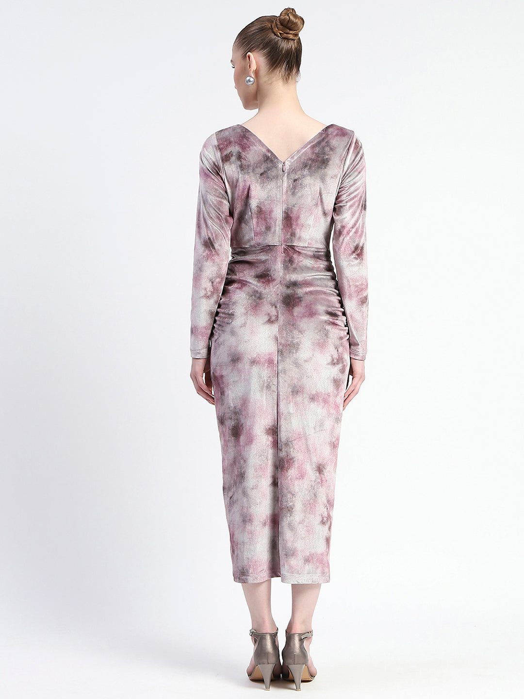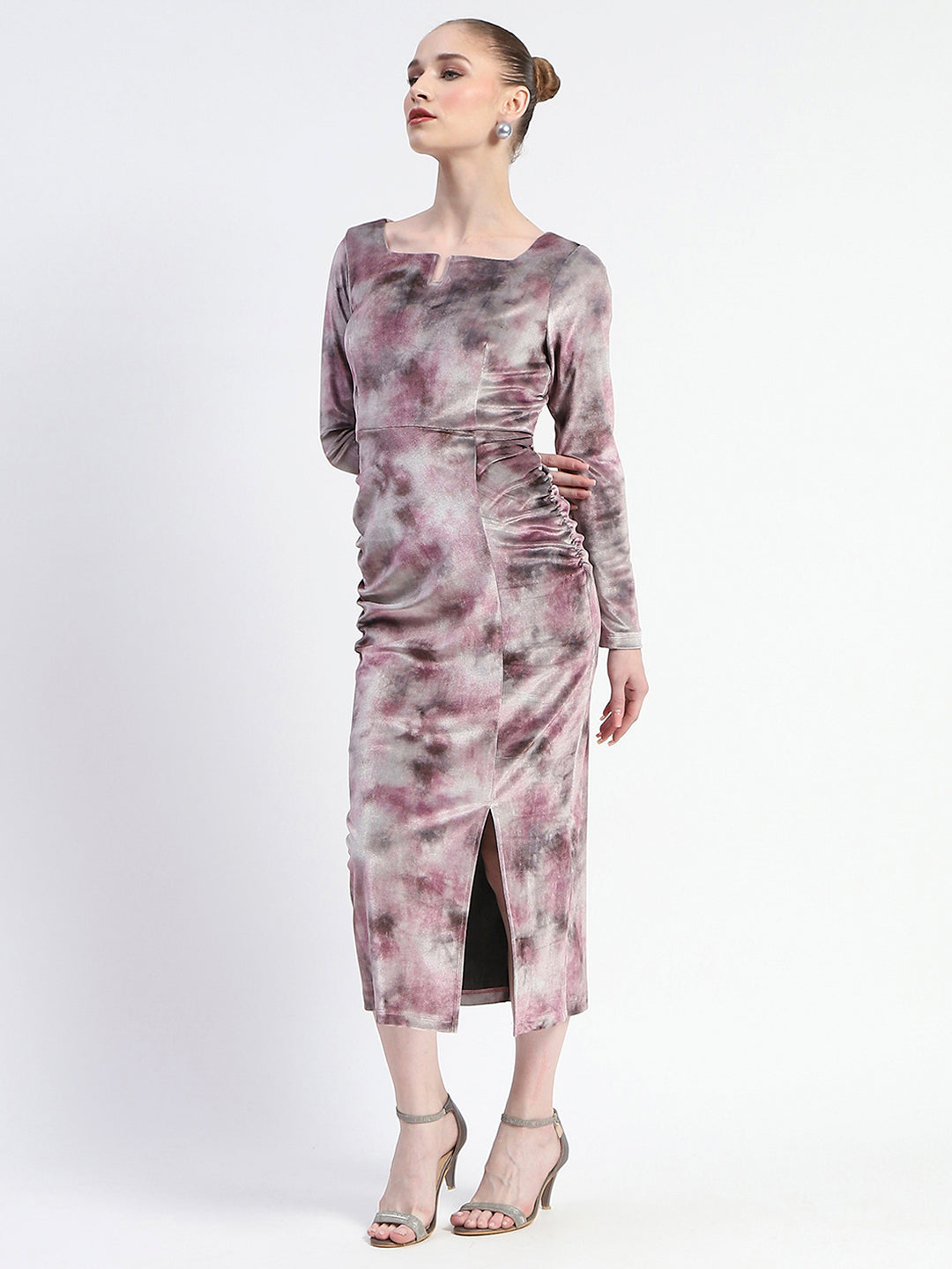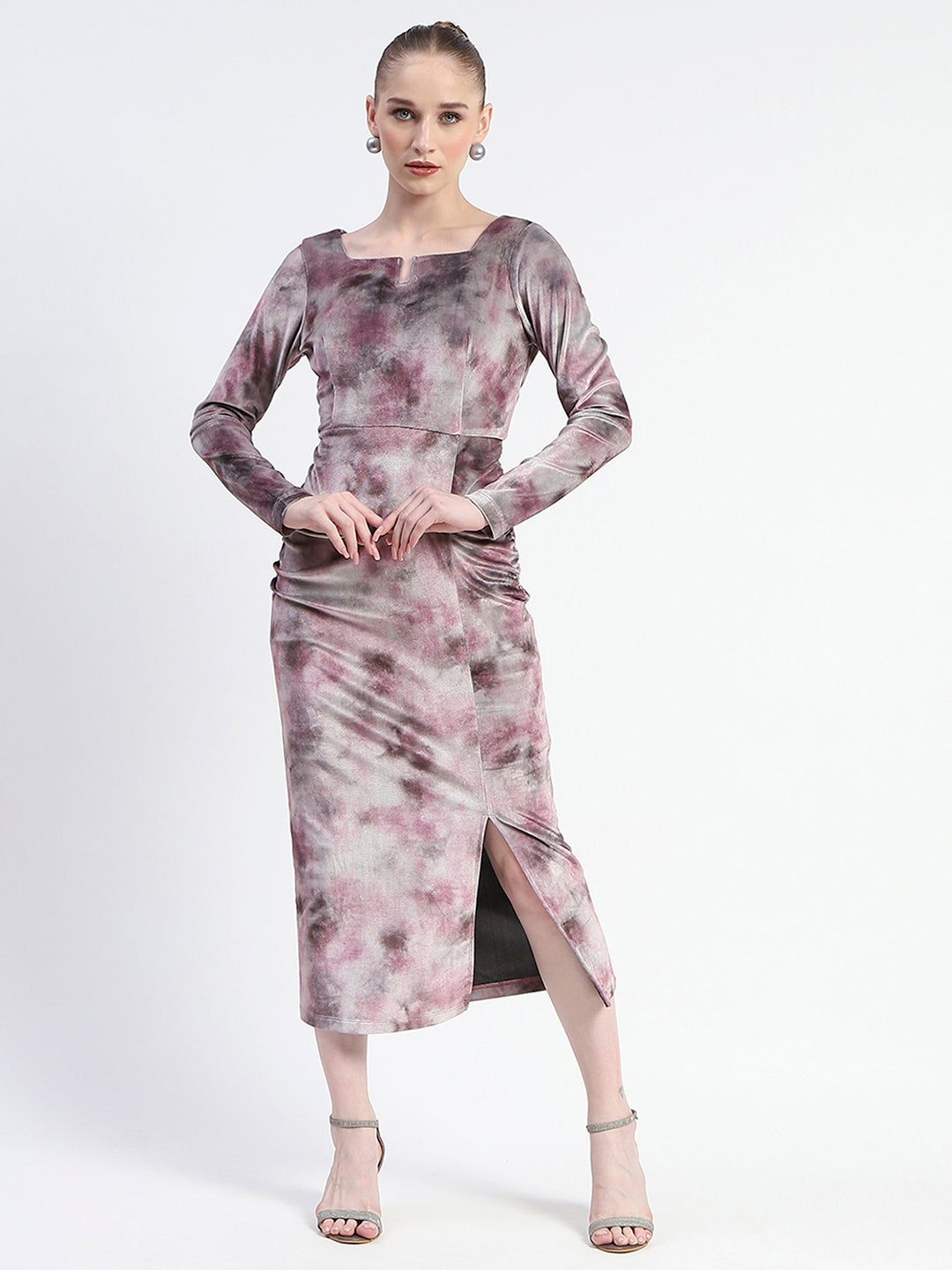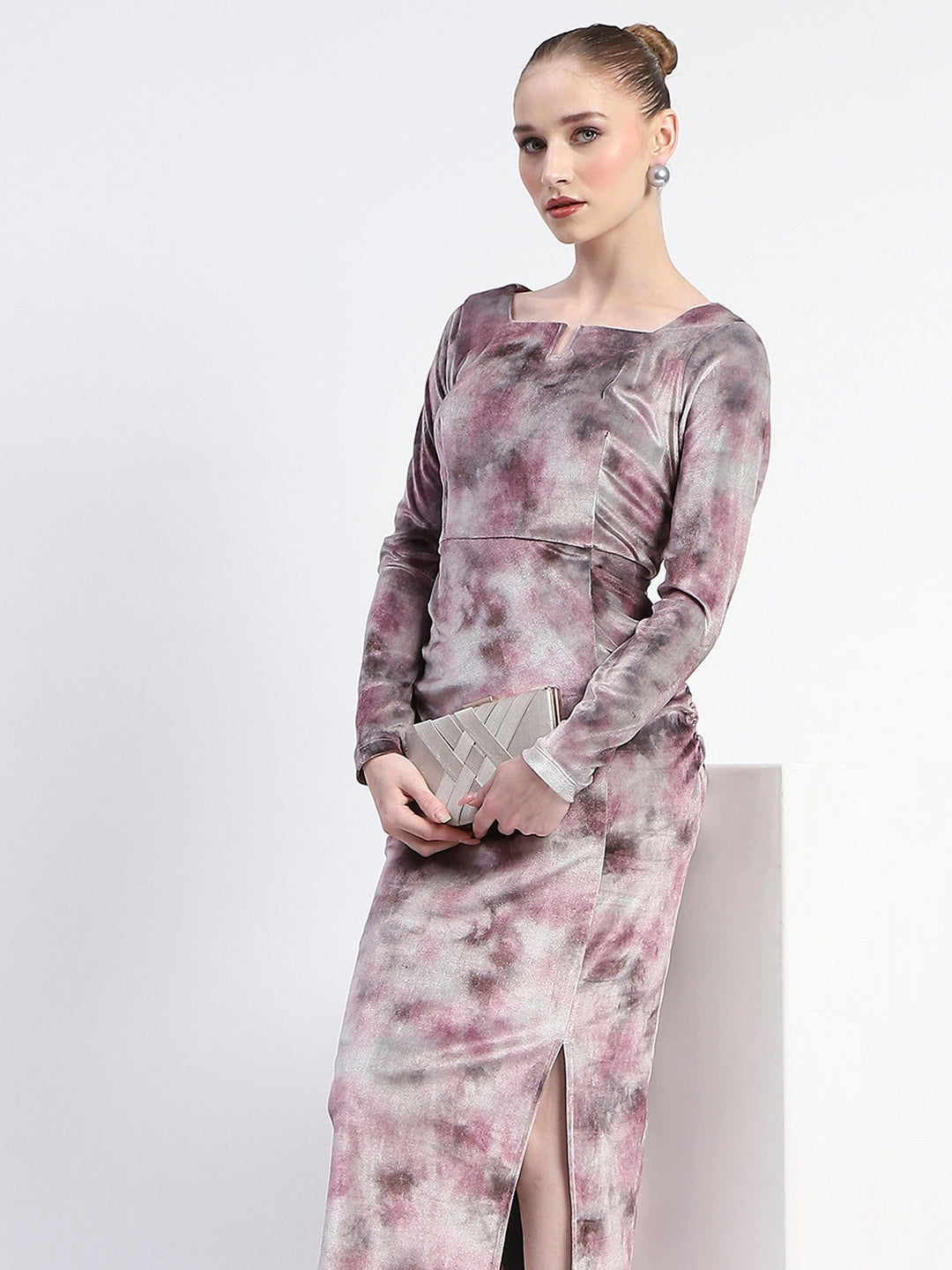 Madame Semi Sheer Side Slit Abstract Print Pink Dress