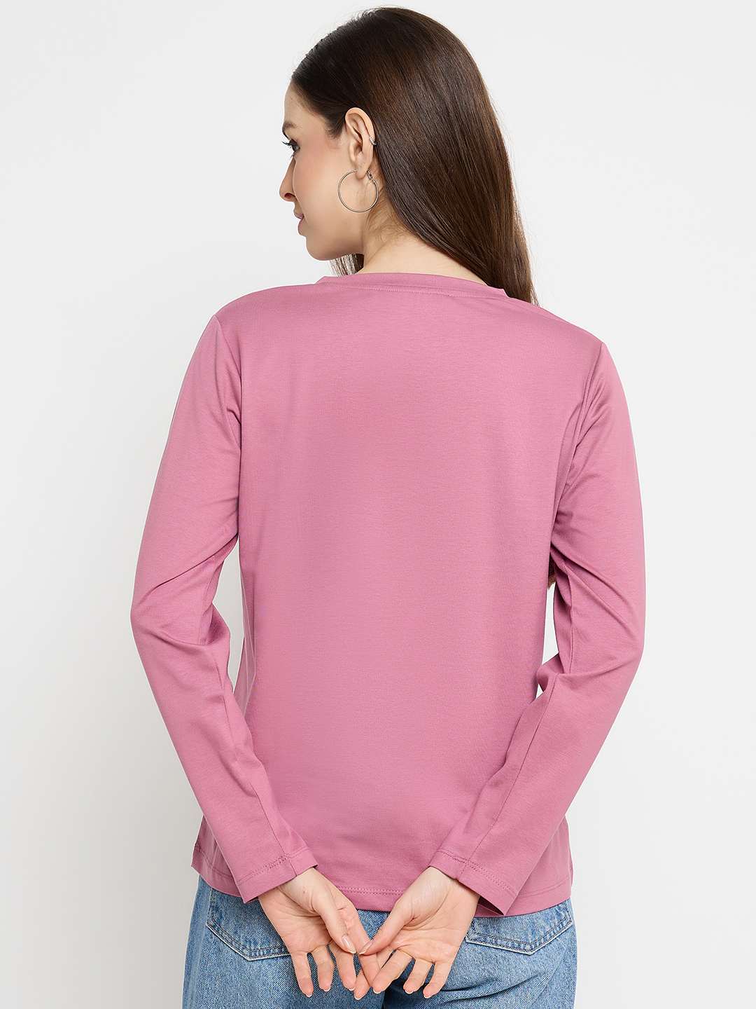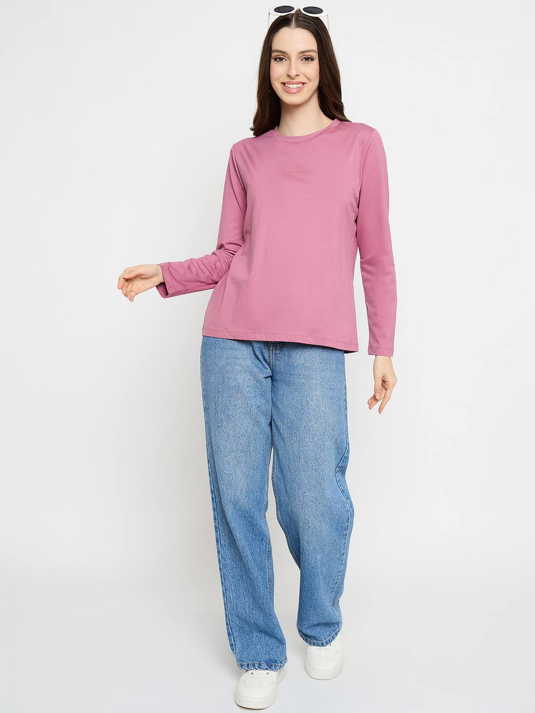 Soft lilac meets modern flair in this cotton-blend tee. Its subtle gradient effect adds a playful twist. It can be easily paired with jeans, shorts, or layered looks.