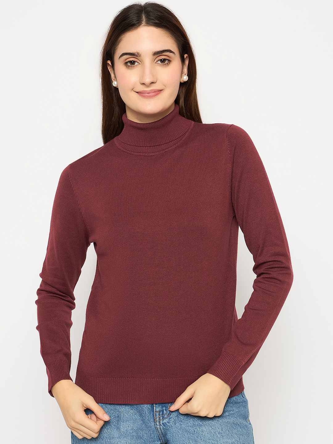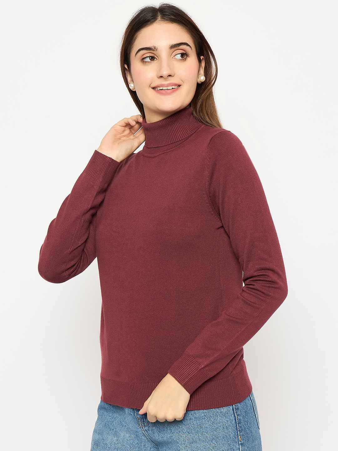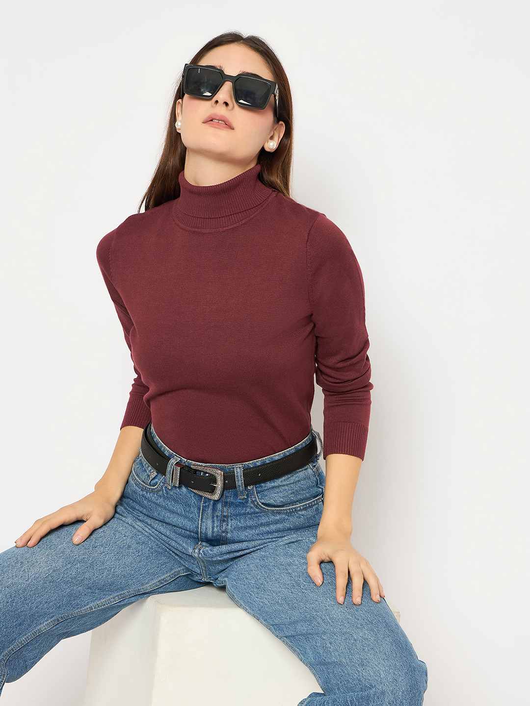 This stunning sweater features a rich wine-red hue that adds a touch of sophistication and warmth to your outfit. The turtle neck design not only keeps you cozy during those chilly days but also offers a chic silhouette. Crafted from a soft, breathable fabric, this sweater ensures comfort without compromising on style, allowing you to move freely while looking effortlessly put together.