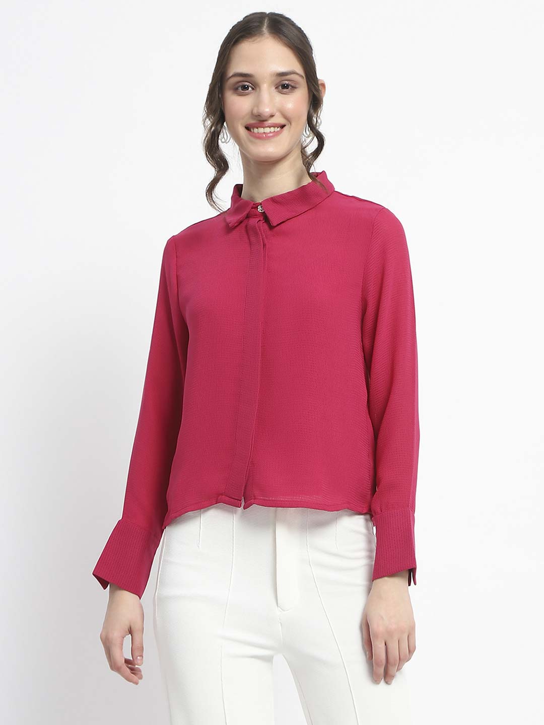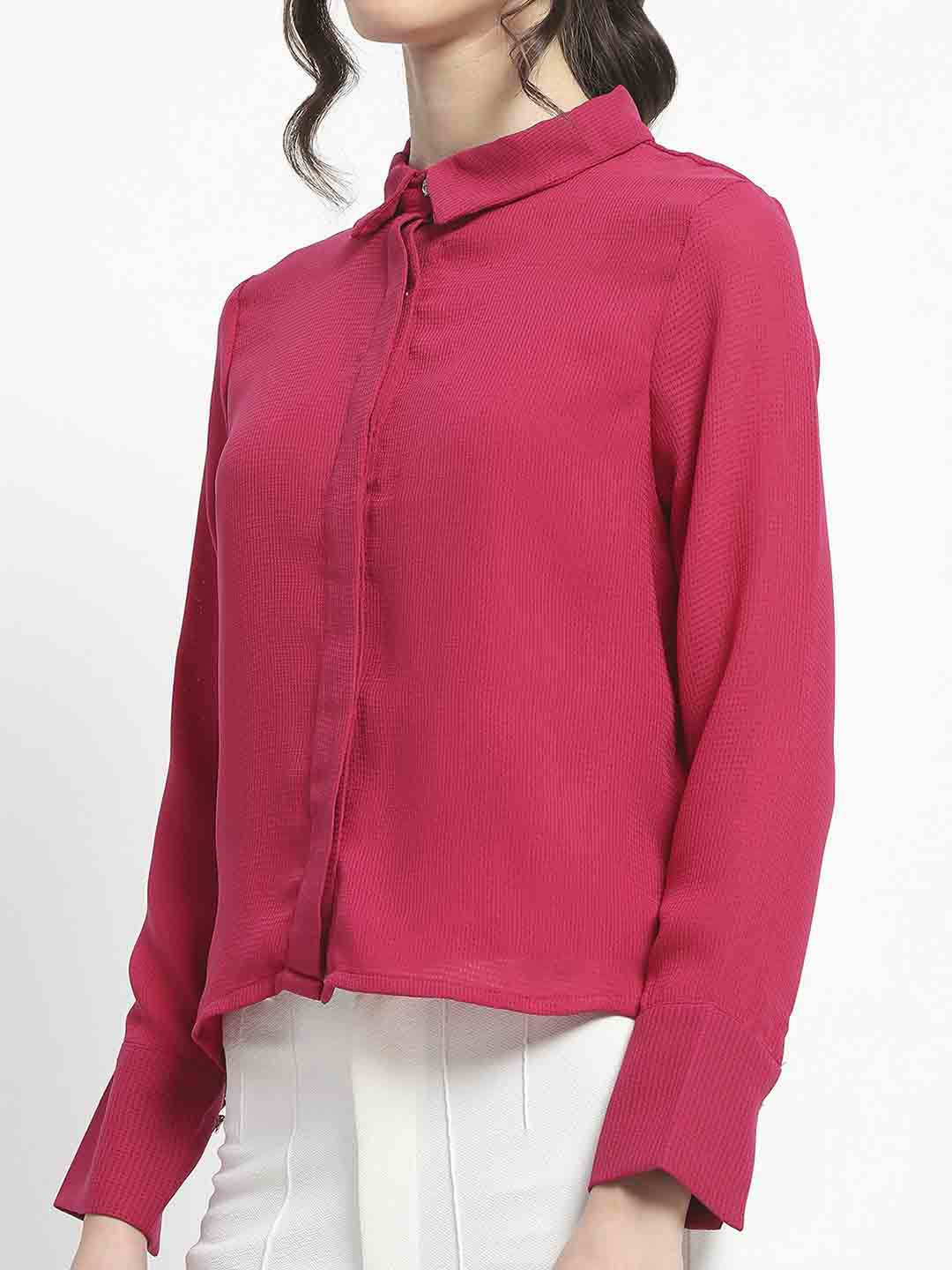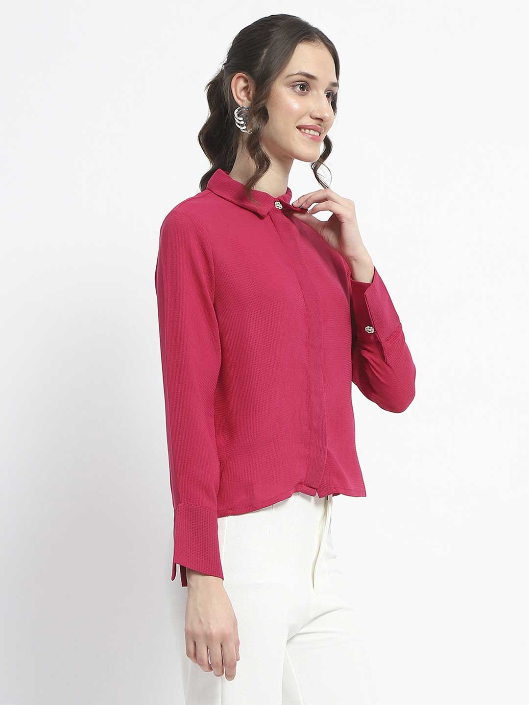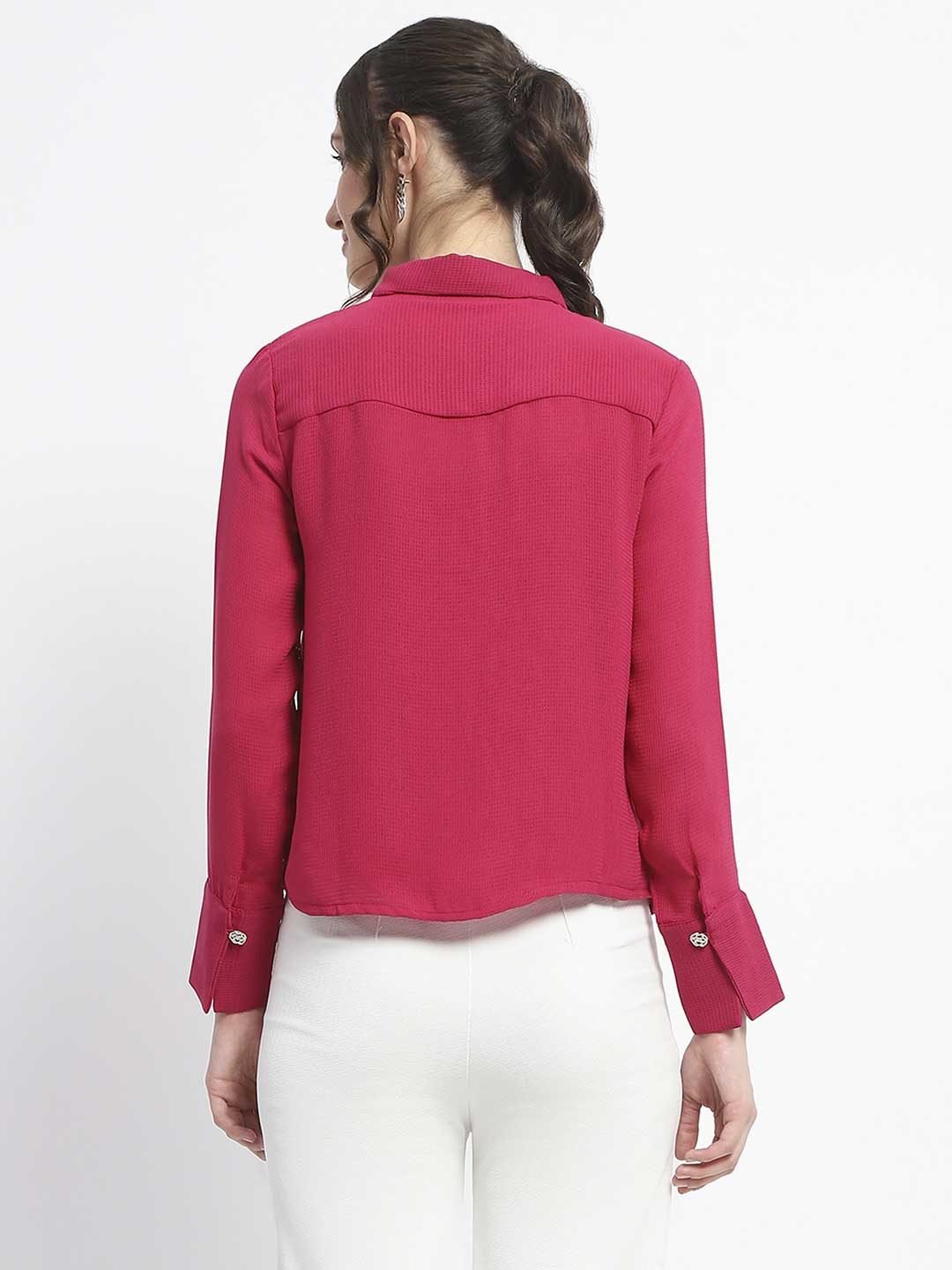 Madame Embellished Button Down Solid Hot Pink Shirt