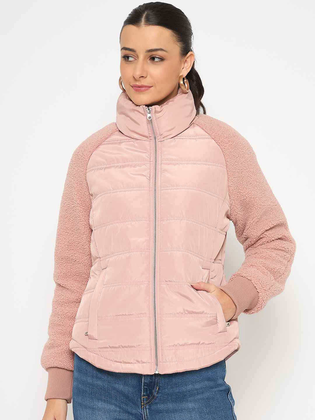 Madame Raglan Sleeved Quilted Dusty Pink Short Jacket
