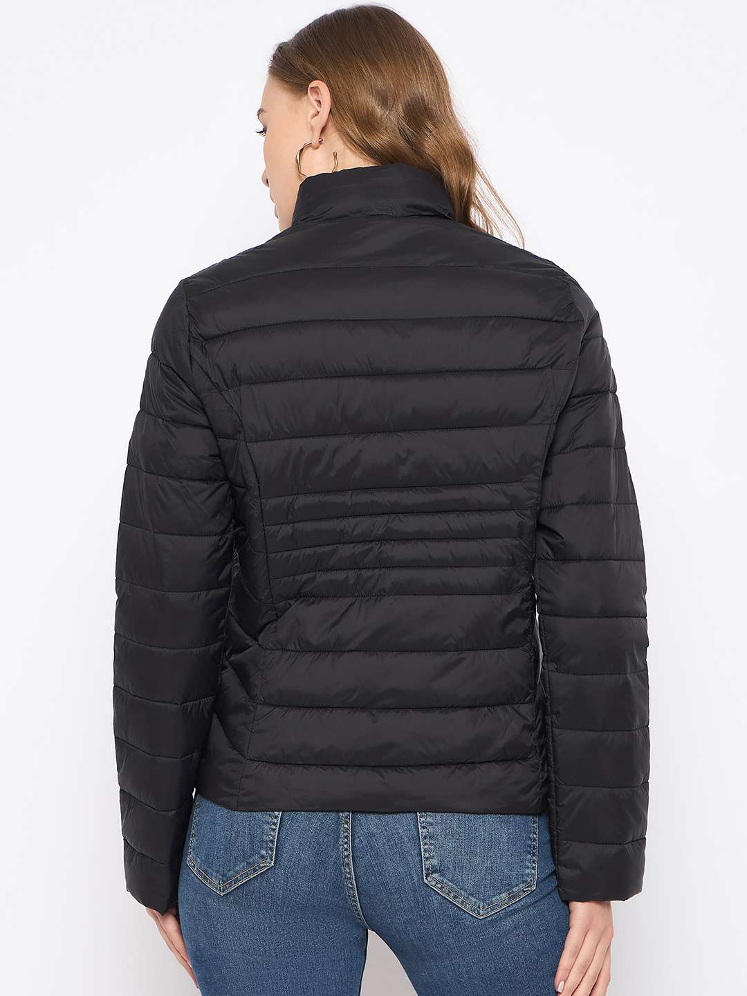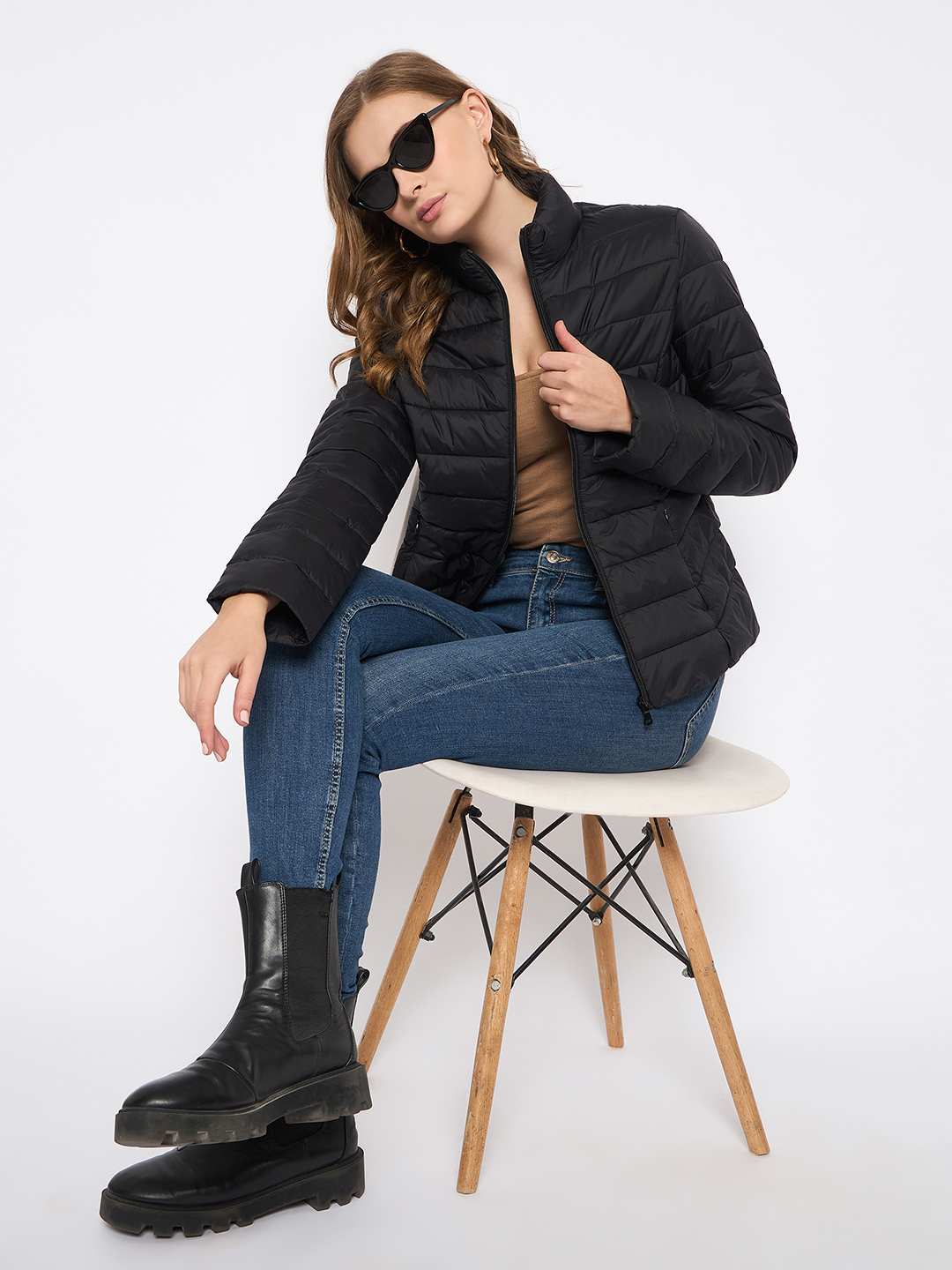Stay warm and stylish in the quilted black puffer jacket from Madame. Lightweight yet cozy, it’s perfect for layering over casual outfits, adding a vibrant pop of color and a trendy touch to your winter wardrobe.