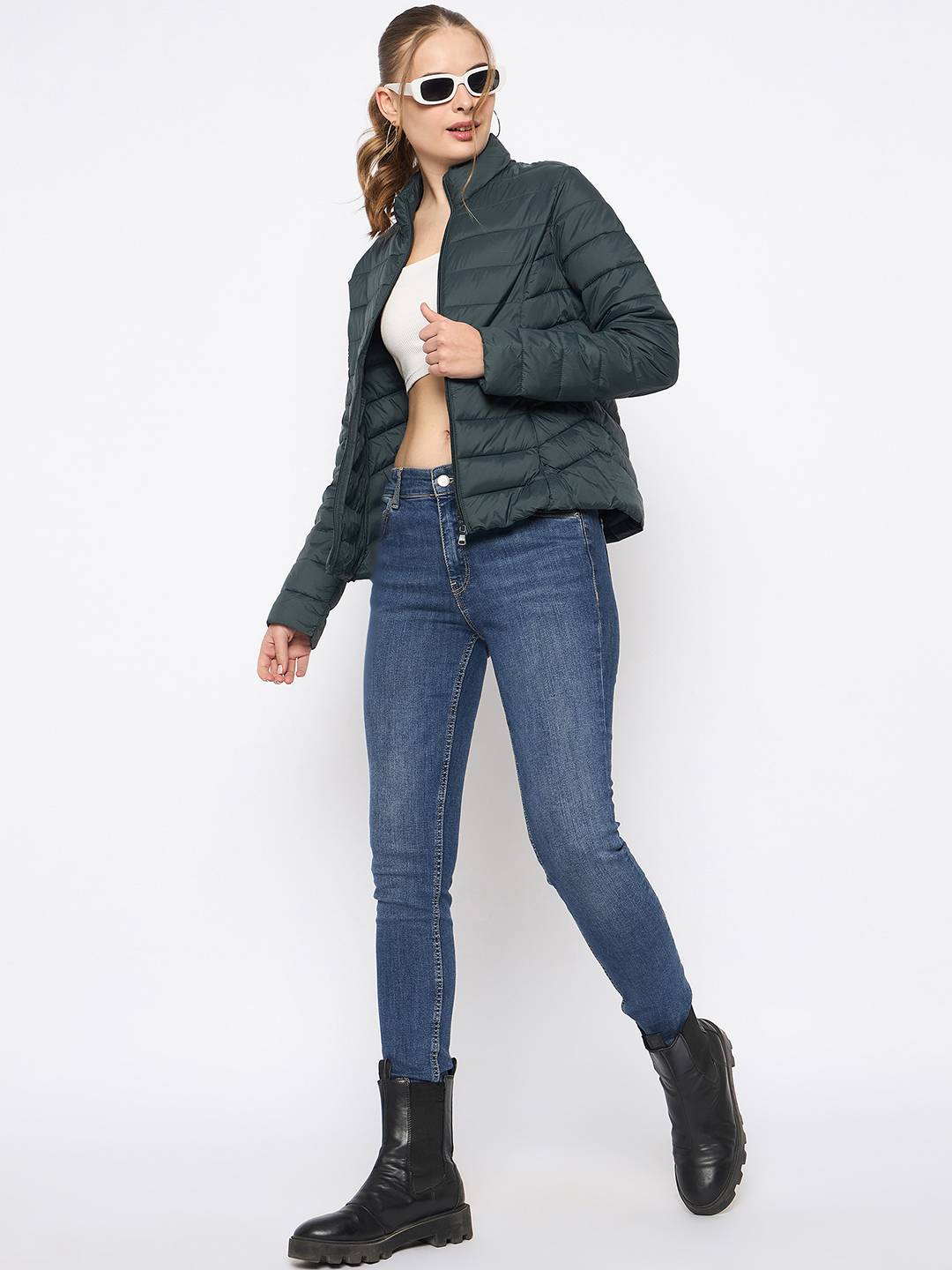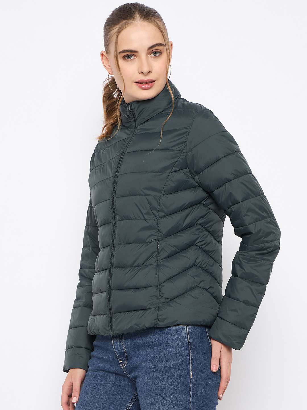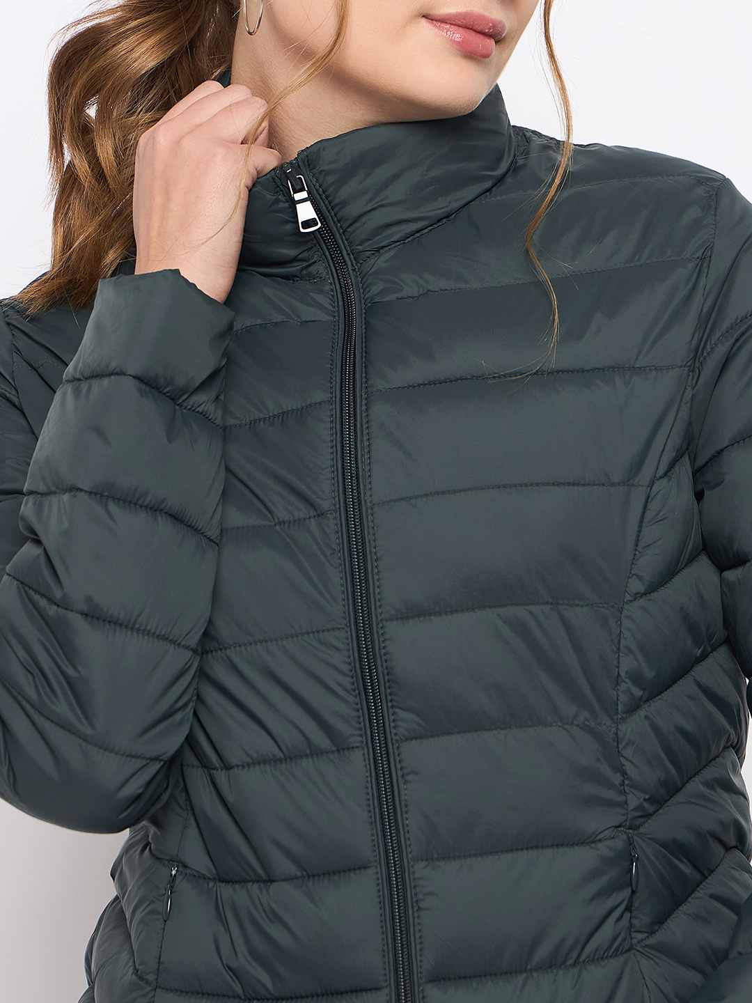 Madame Quilted Bottle Green Puffer Jacket