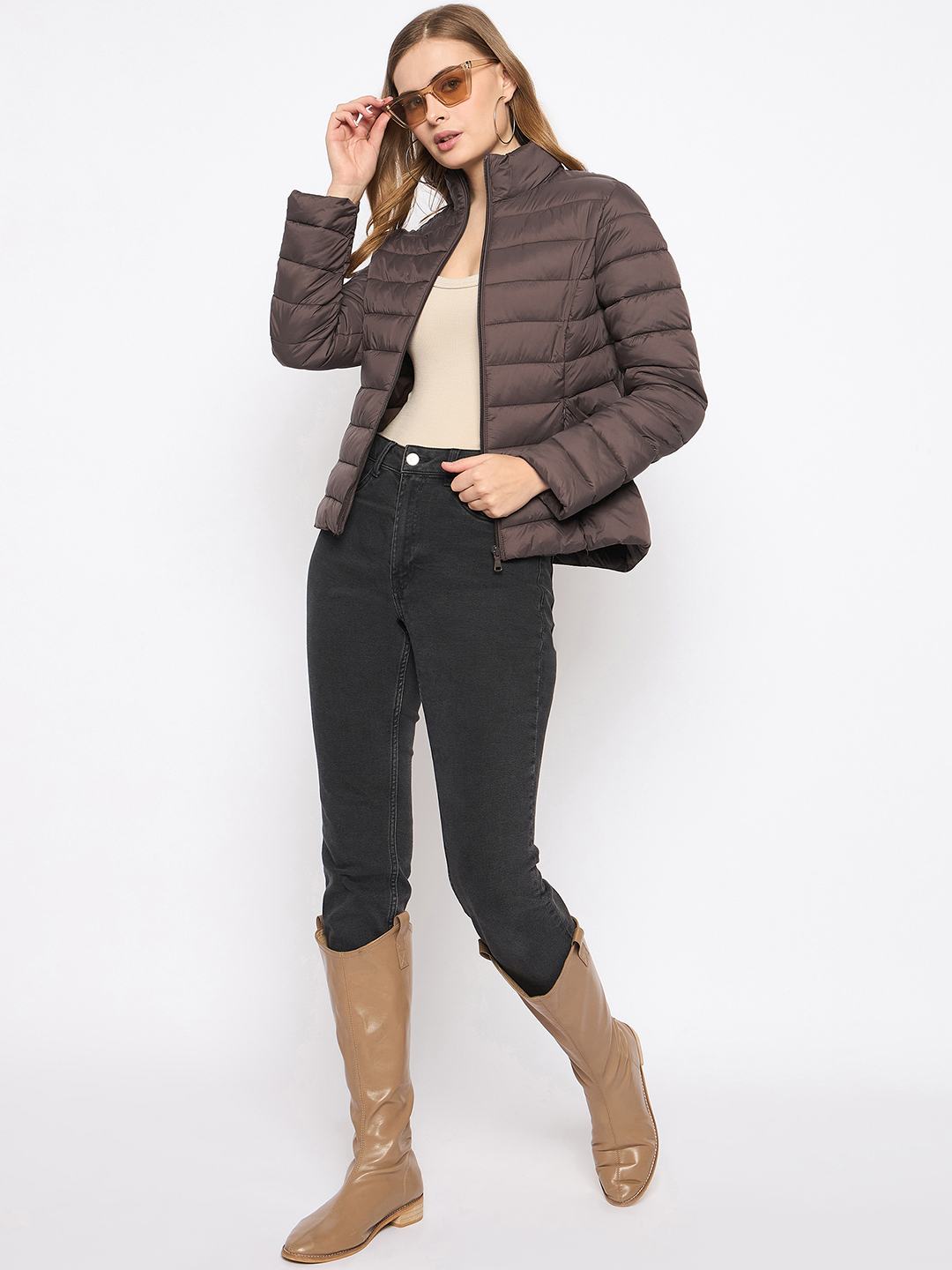 Stay warm and stylish in the quilted coffee brown puffer jacket from Madame. Lightweight yet cozy, it’s perfect for layering over casual outfits, adding a vibrant pop of color and a trendy touch to your winter wardrobe.