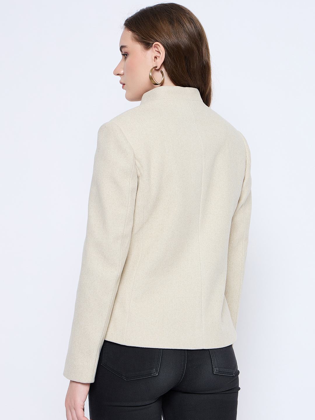 Madame Melange Button Detailed Off White Short Coat