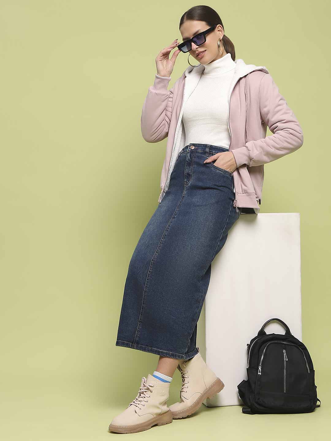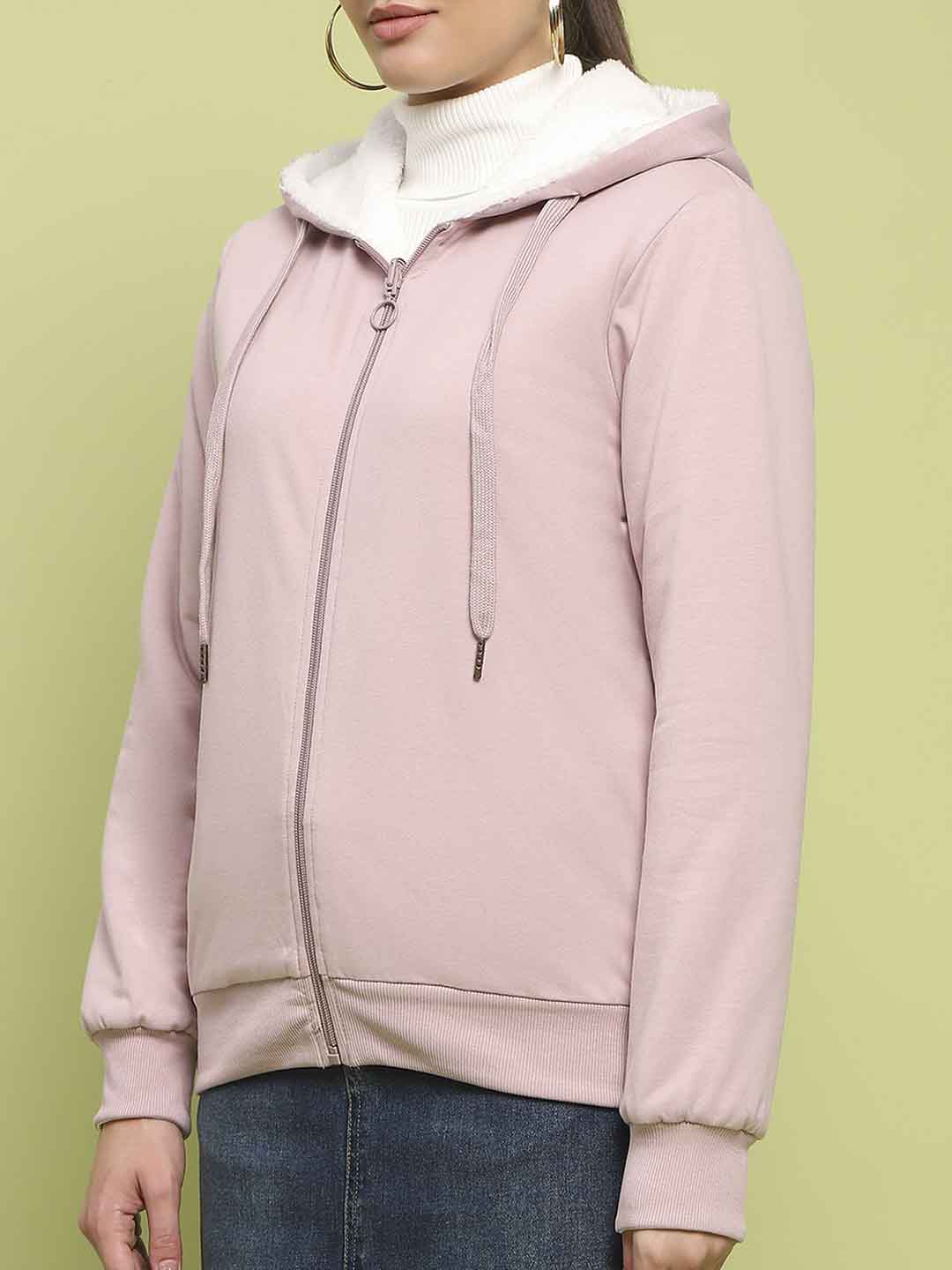 Madame Metal Detailed Zipper Lilac Hooded Sweatshirt