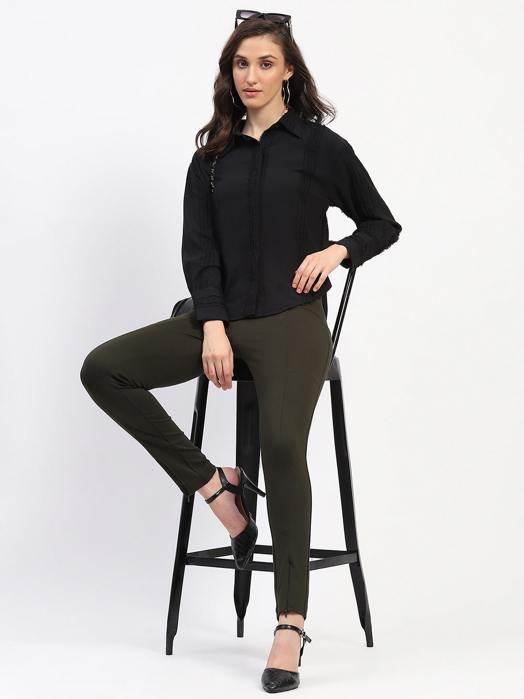 Designed to offer both style and comfort, these trousers feature a rich olive hue that adds a touch of elegance to any outfit. The pleated front detail not only enhances the overall aesthetic but also complements various body types. With a straight-leg cut, these trousers offer a timeless look that can be easily dressed up for formal occasions or dressed down for casual outings. The versatile nature of the olive color allows for seamless pairing with a range of tops, from crisp white blouses to cozy knitwear. The waistband is tailored for a comfortable fit, ensuring that the trousers remain secure throughout the day while allowing for ease of movement.