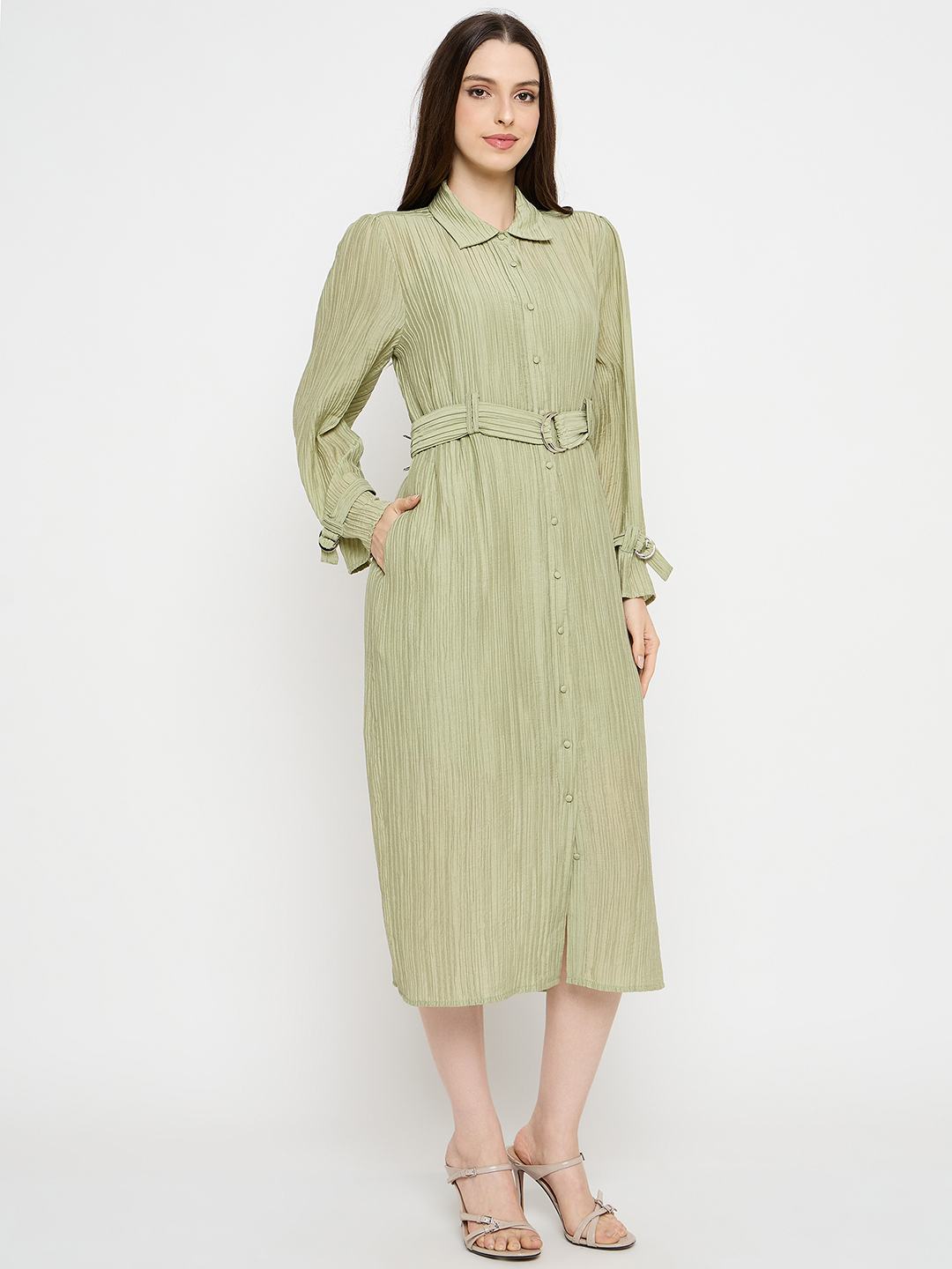 Madame Crushed Tissue Belted Moss Green Shirt Dress