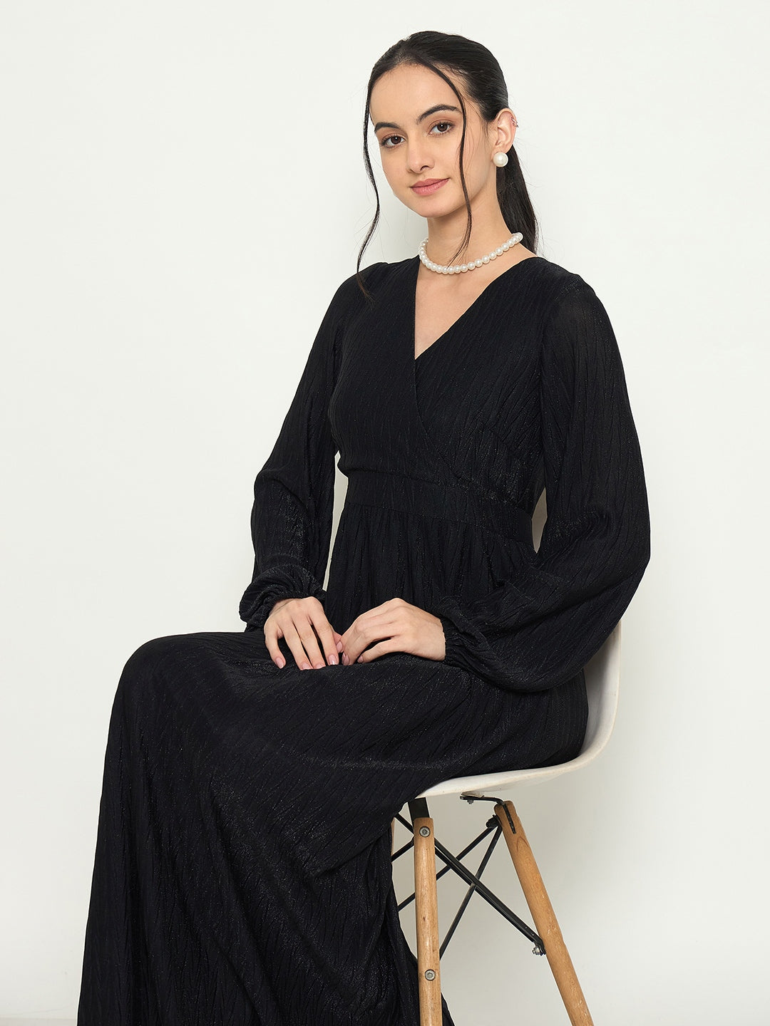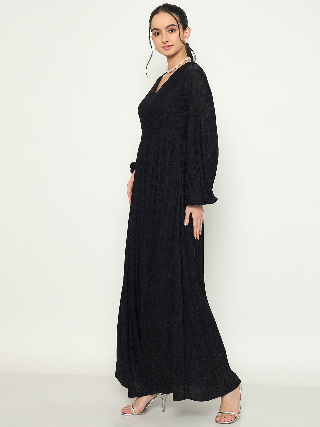 A classic black maxi with a flattering V-neck and a flowy fit this dress is all about easy elegance. Style it with heels for a dressed-up look or keep it minimal for understated charm.