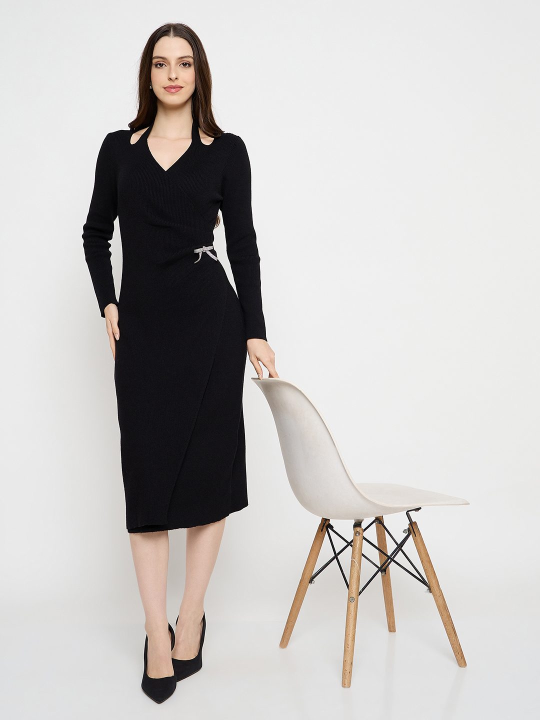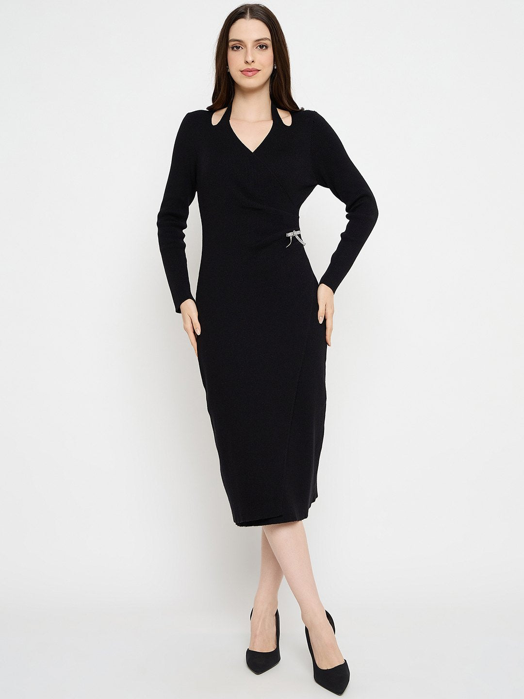Madame Cutout Detail Embellished Accent Black Midi Dress