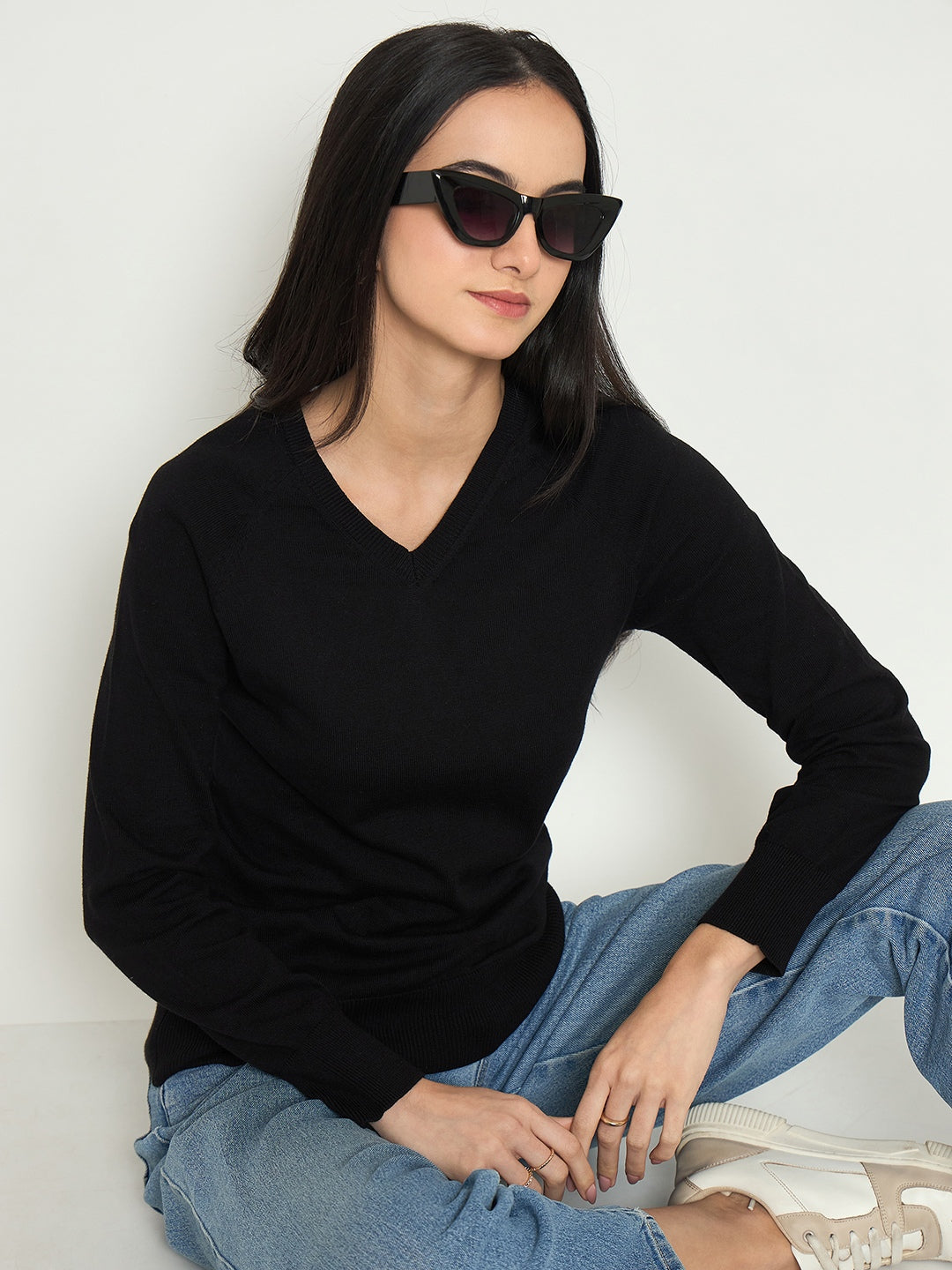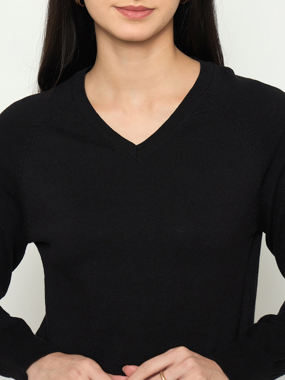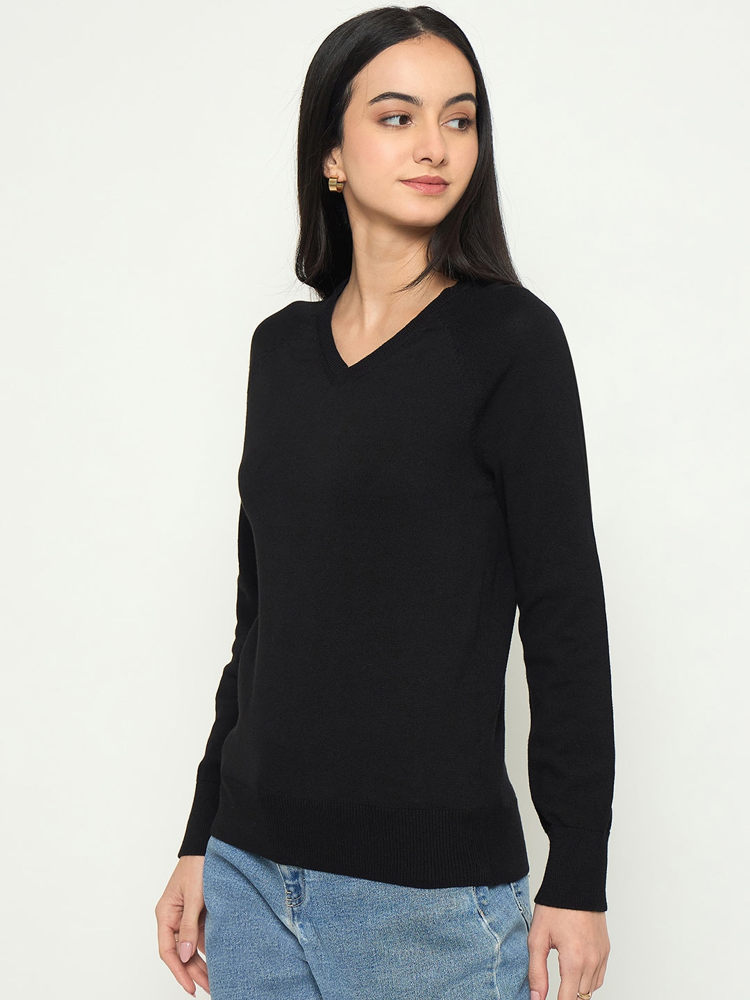 Madame V Neck Solid Black Sweater