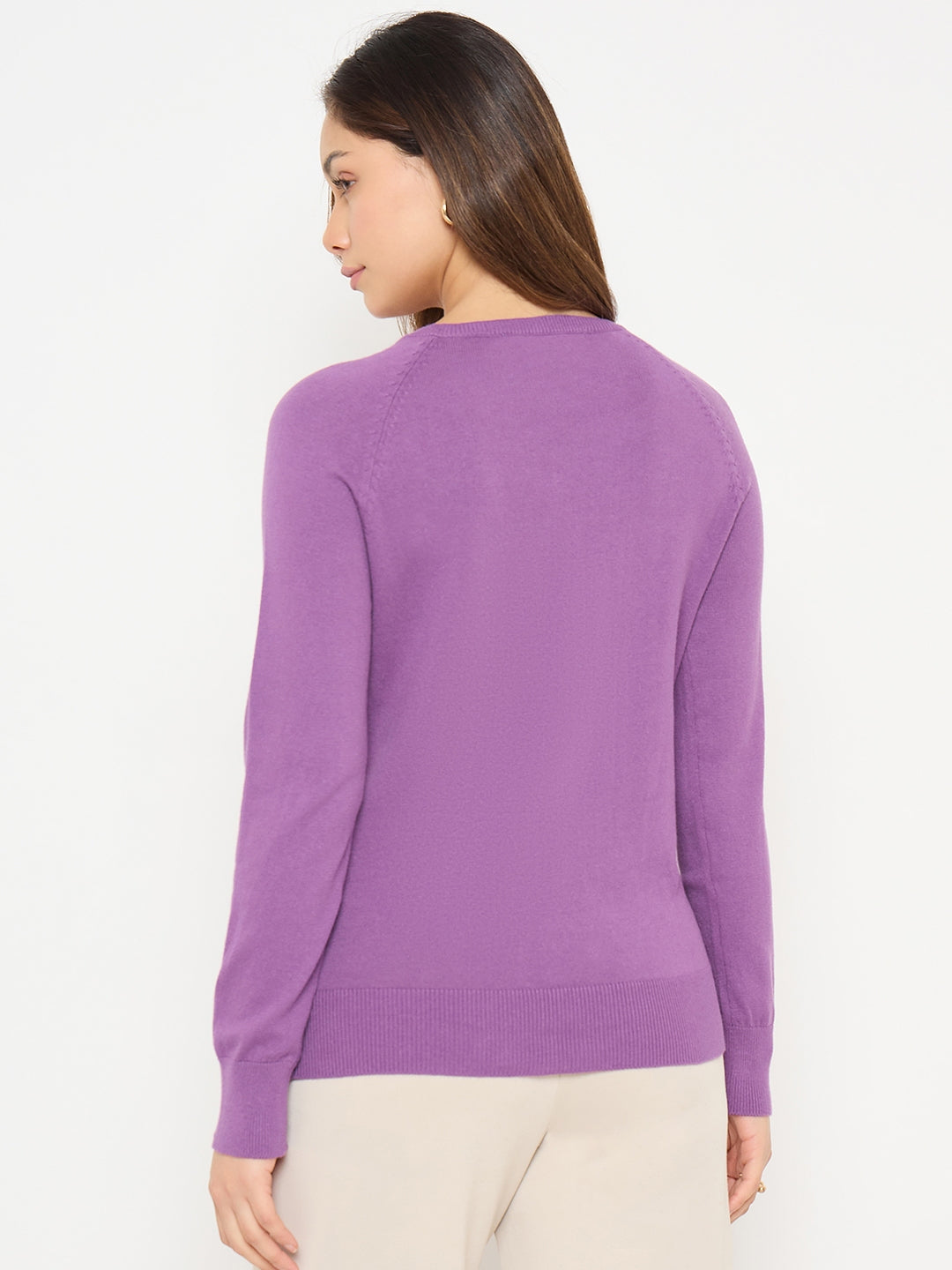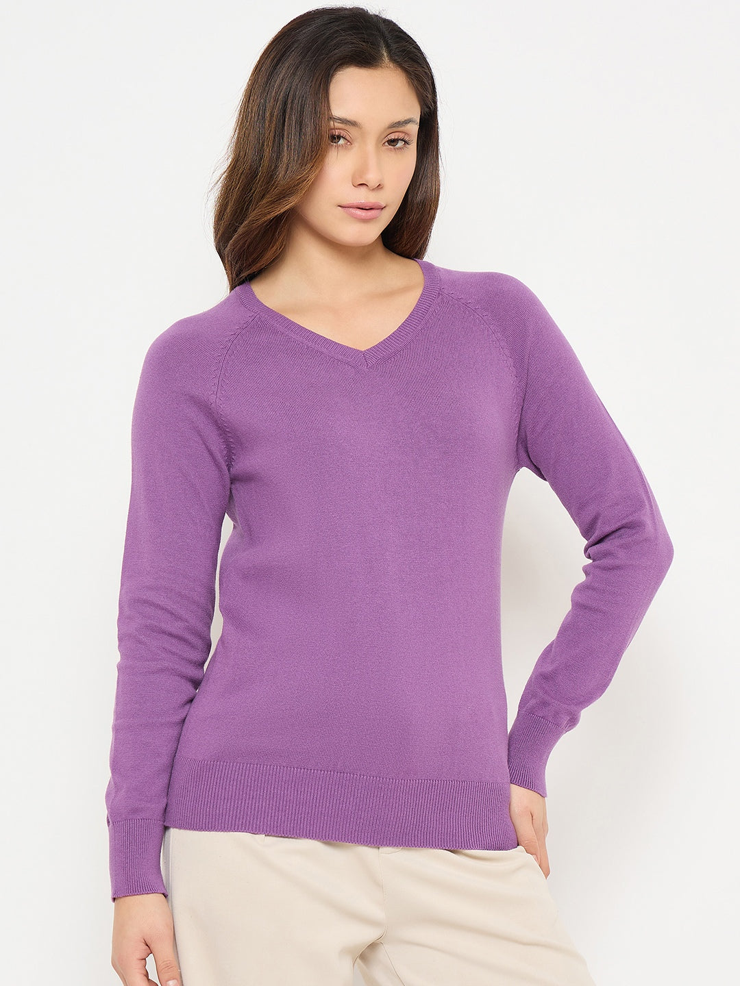 Madame V Neck Purple Solid Sweater