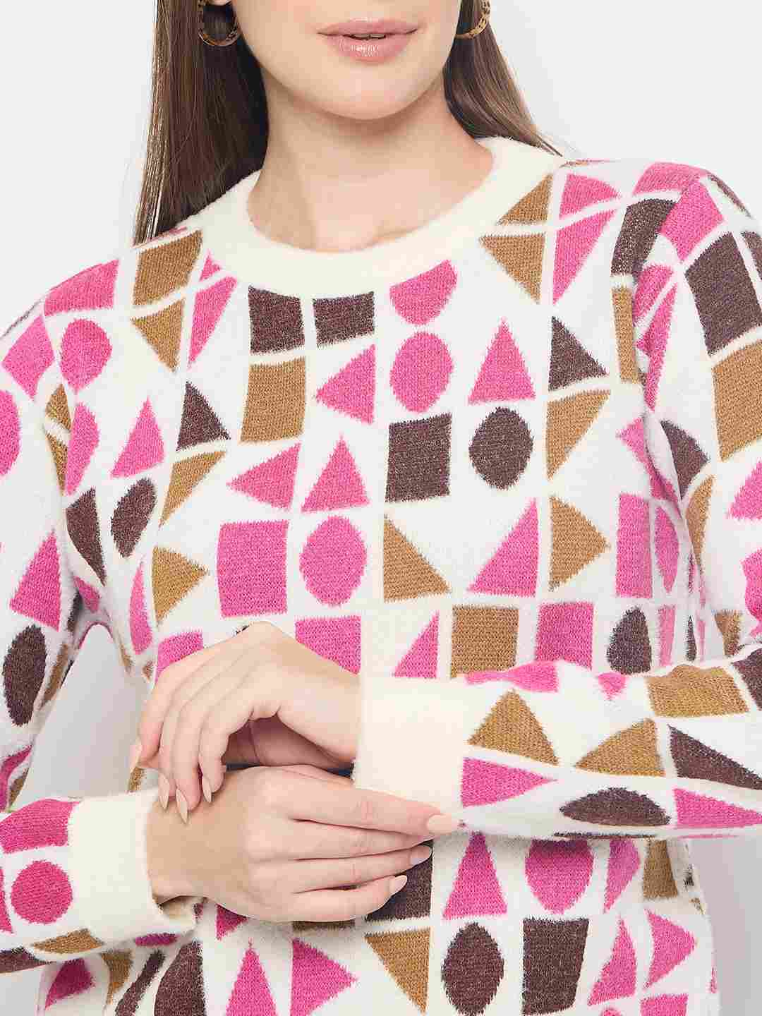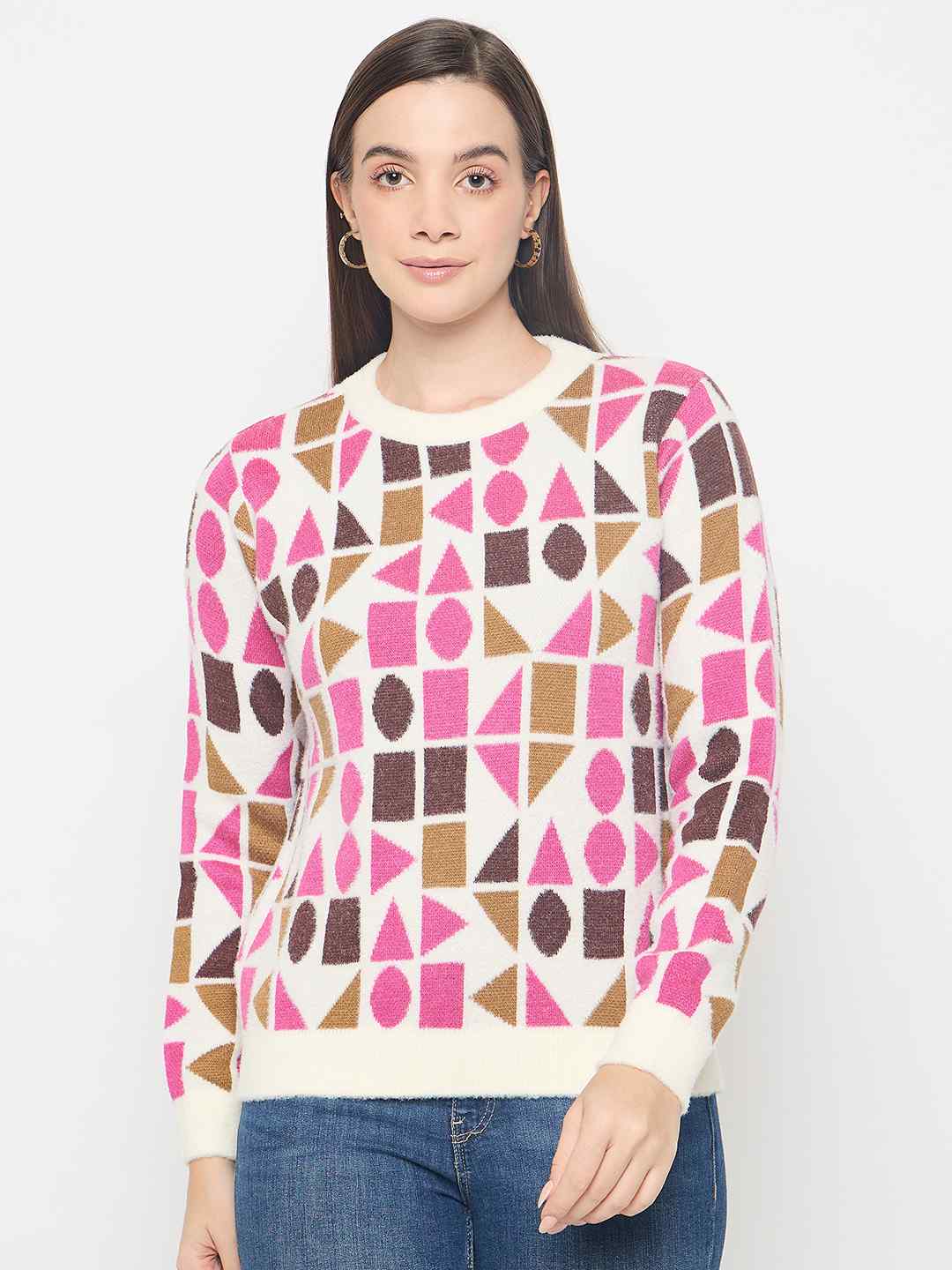 Madame Geometric Print Acrylic Blend Multicolor Sweater