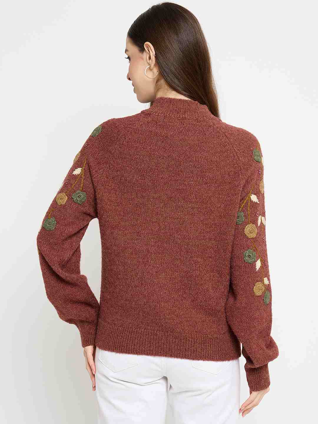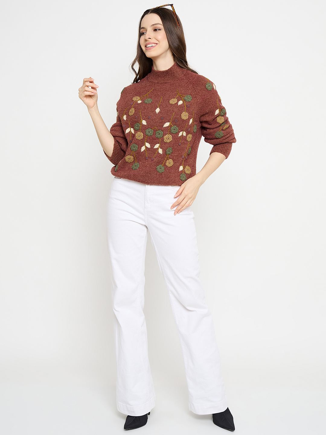 A cozy-chic essential that adds structure to its feminine flair. Made from a premium acrylic blend, this pista green knit showcases floral prints and ribbed finishes.