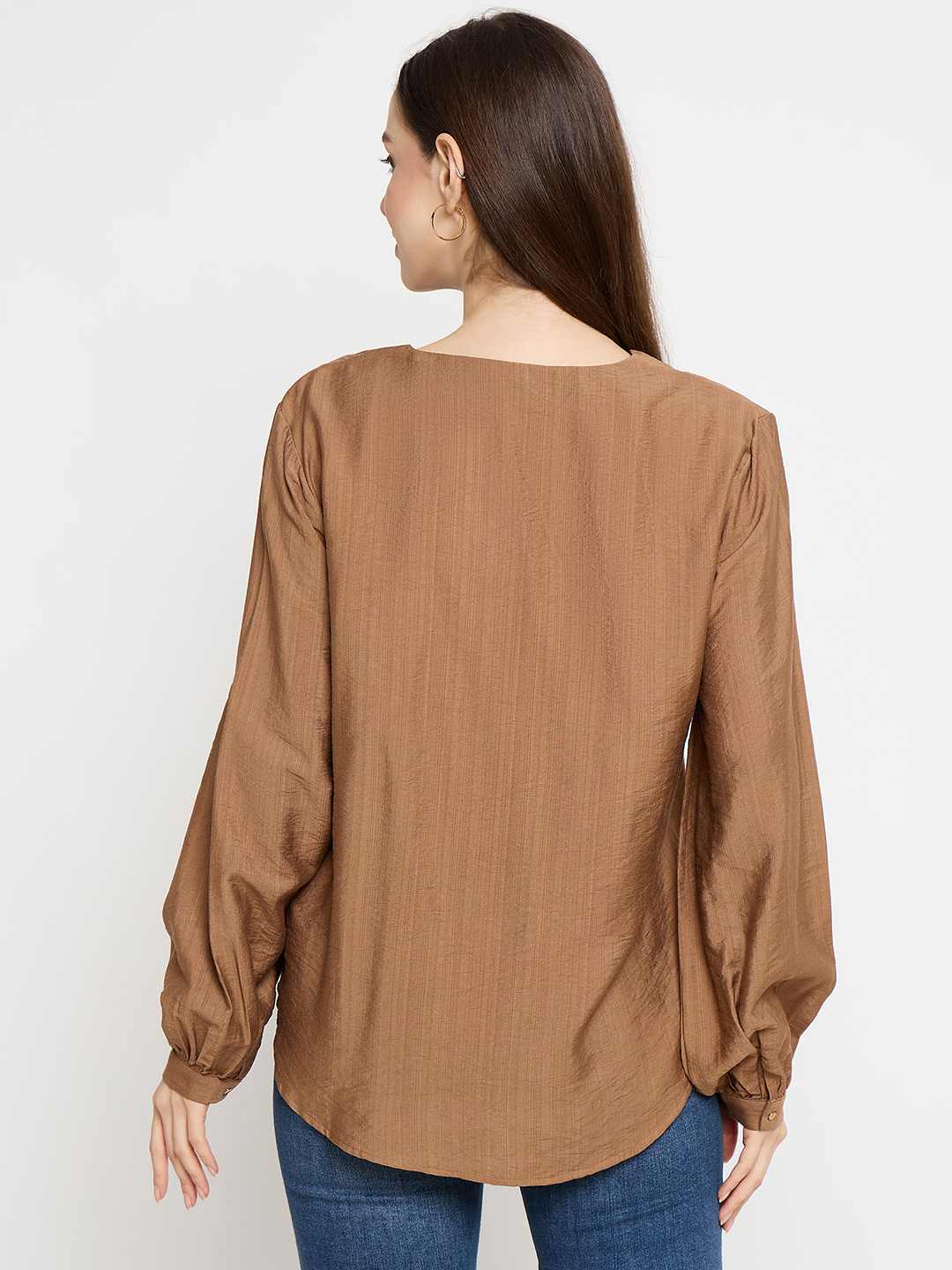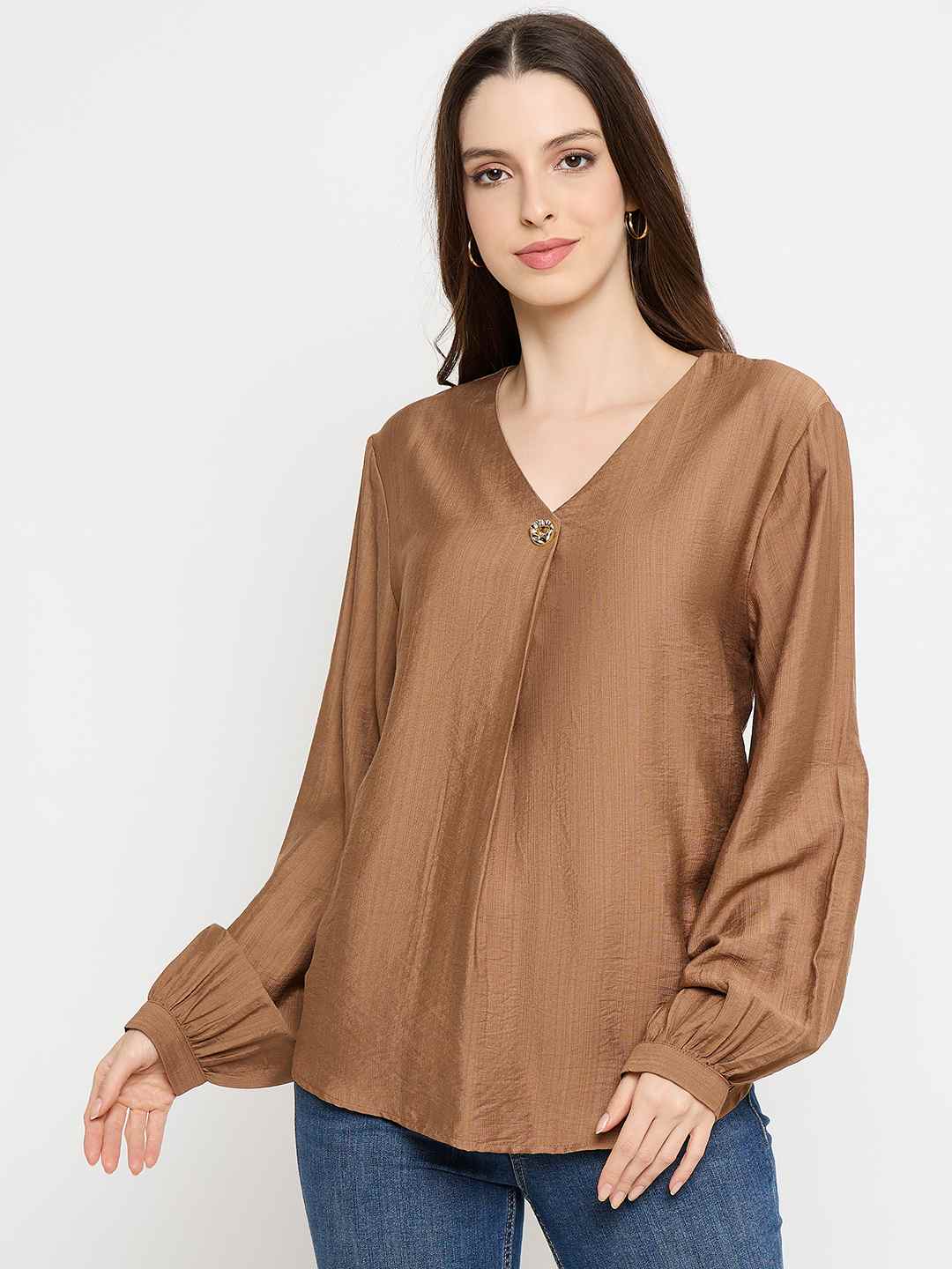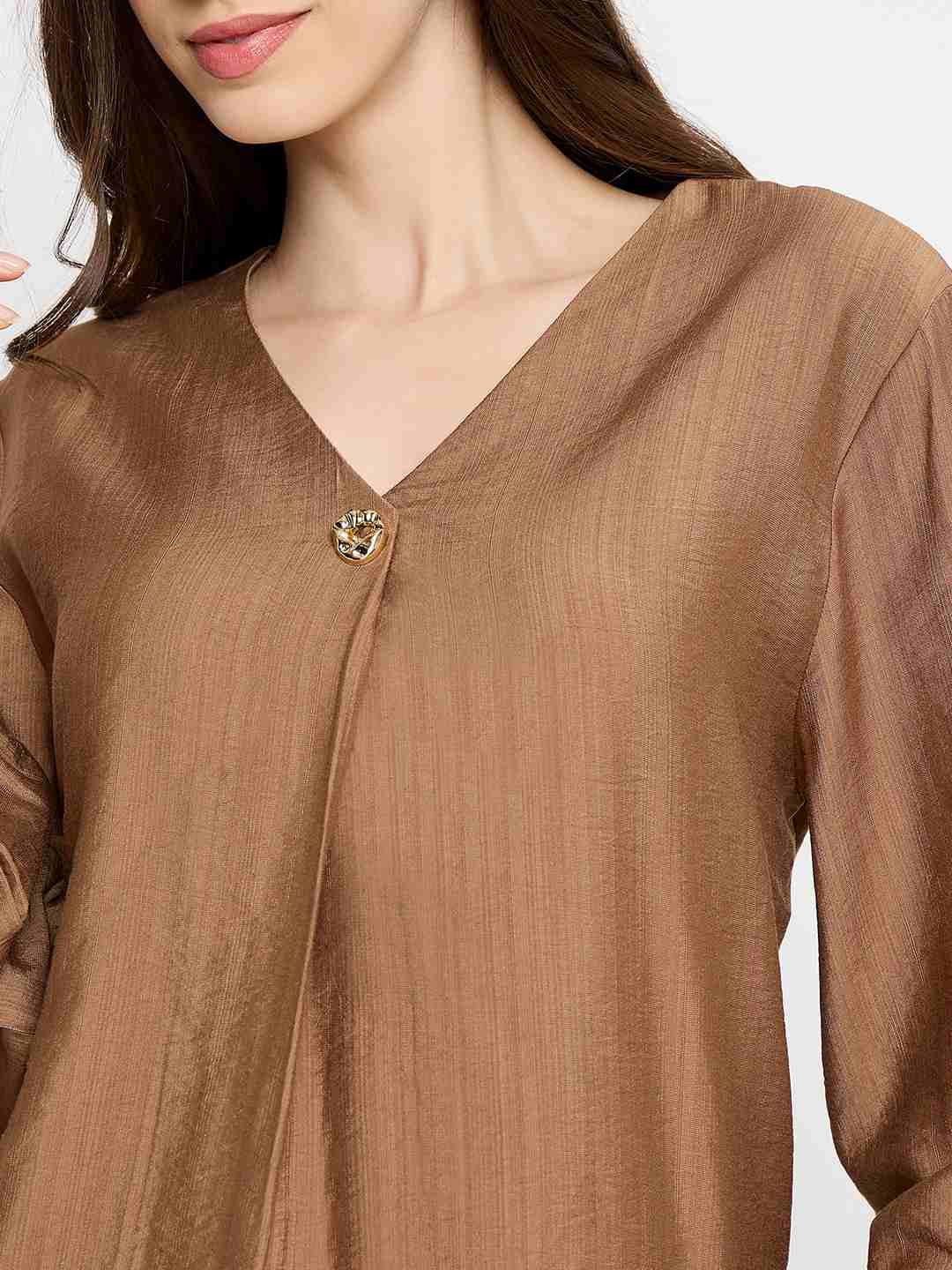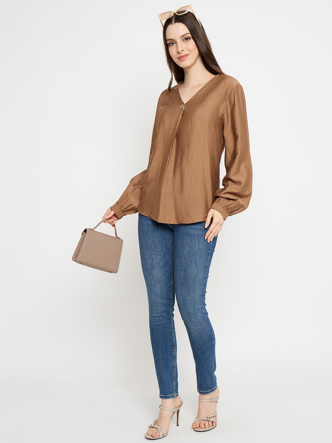Madame Gold Button Detail Chocolate Brown Top