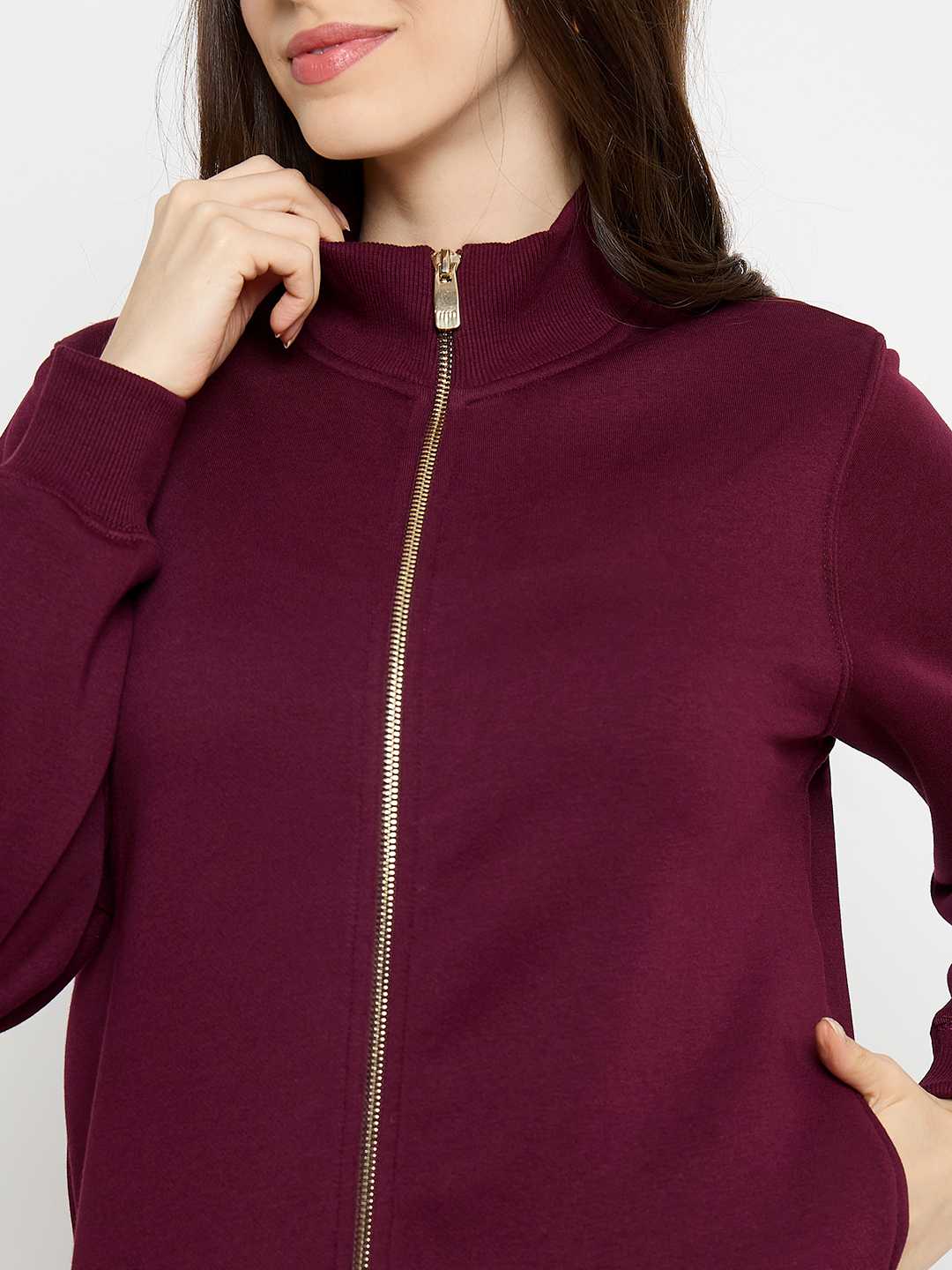 Madame Cotton Blend Zip Up Plum Sweatshirt