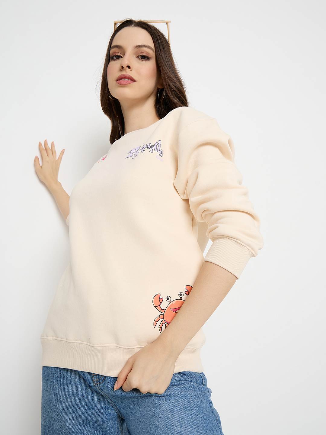 Madame Graphic Print Cotton Blend Cream Pullover Sweatshirt
